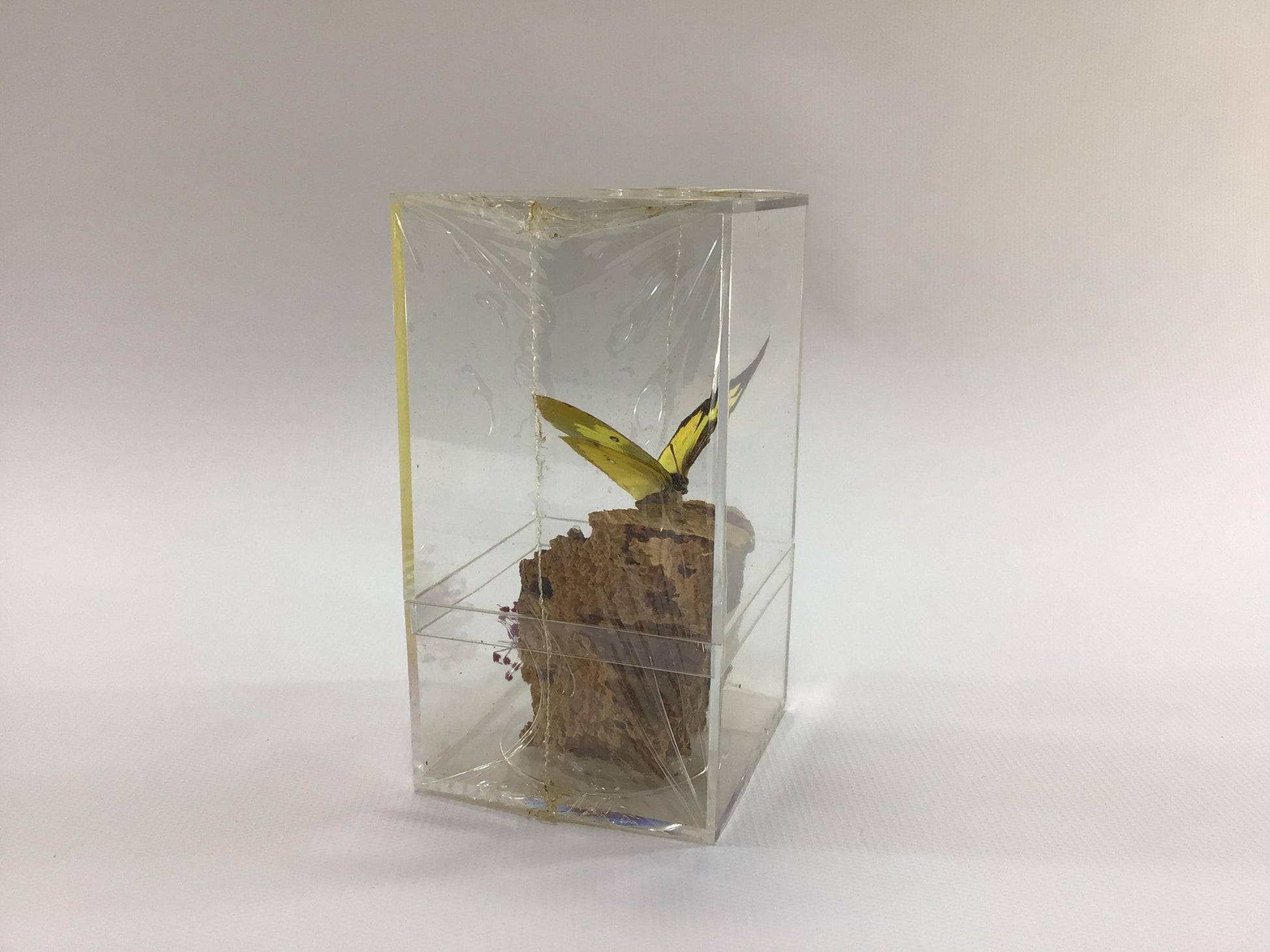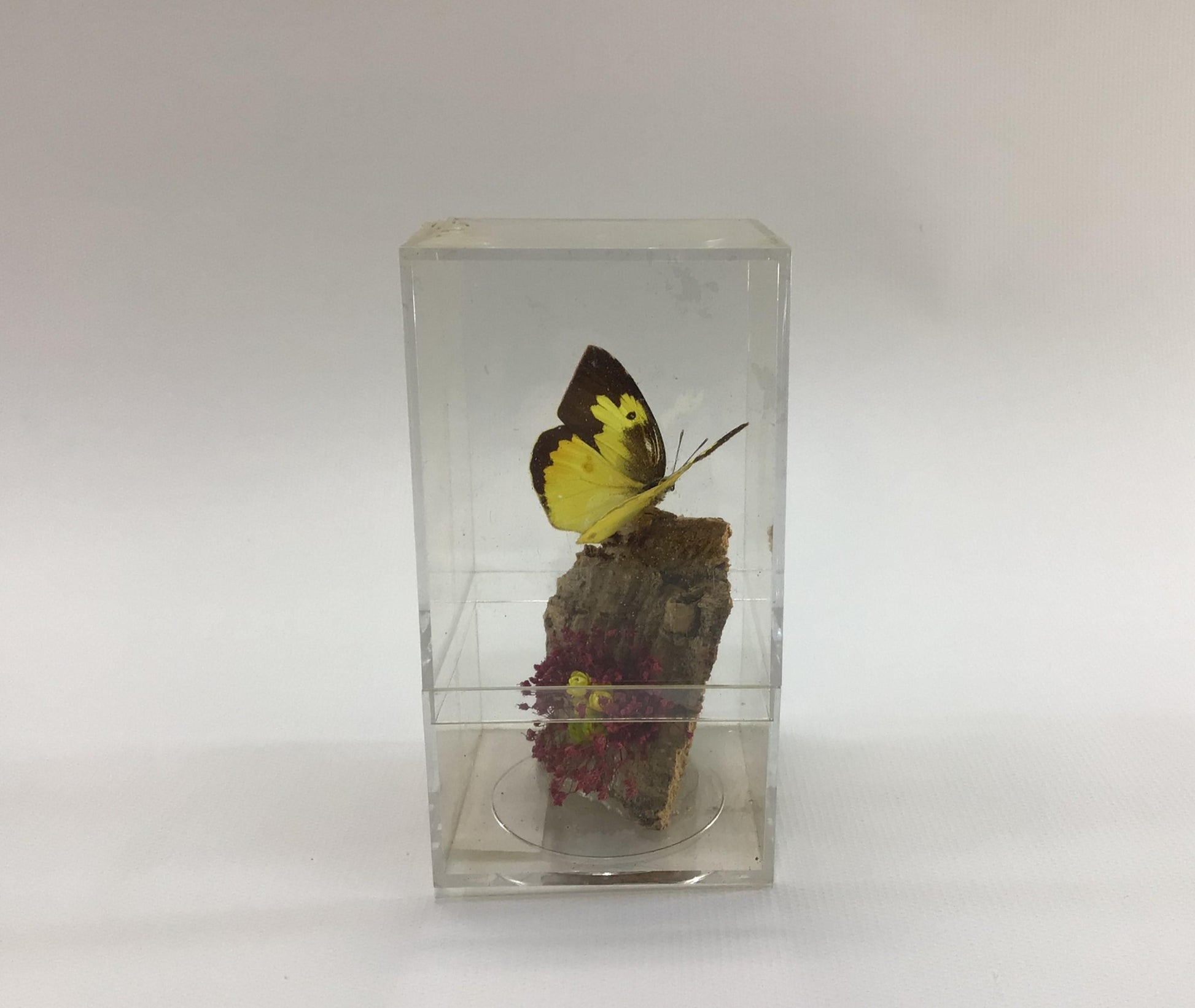 Acrylic Encased Taxidermy Colias Cesonia Dogface Butterfly Vintage Mexico Travel Souvenir