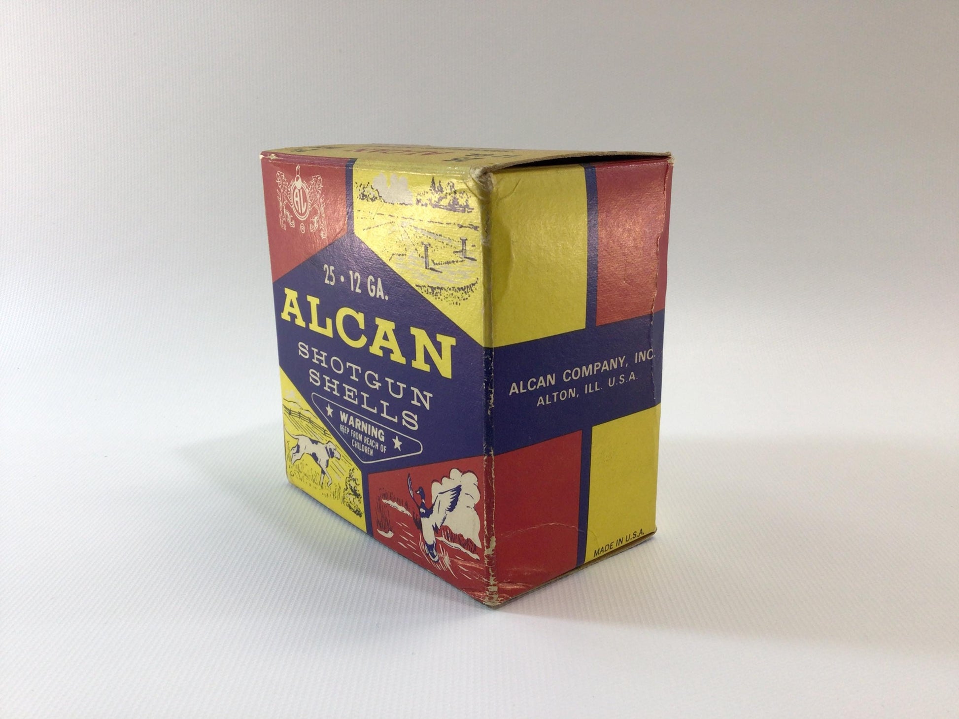 ALCAN 12 Gage Shotgun Shells Empty Box Vintage Sports Hunting Advertising Ephemera.