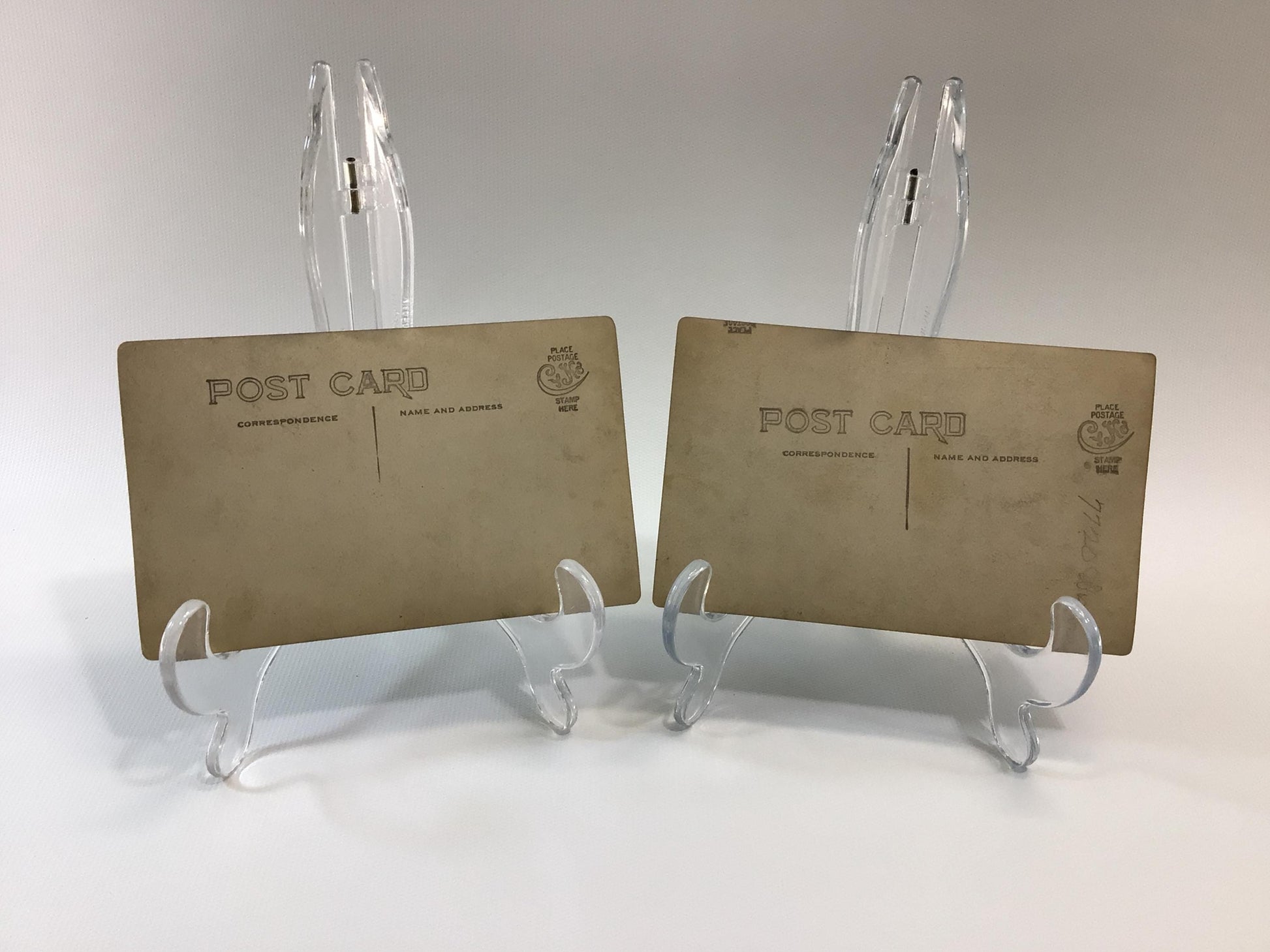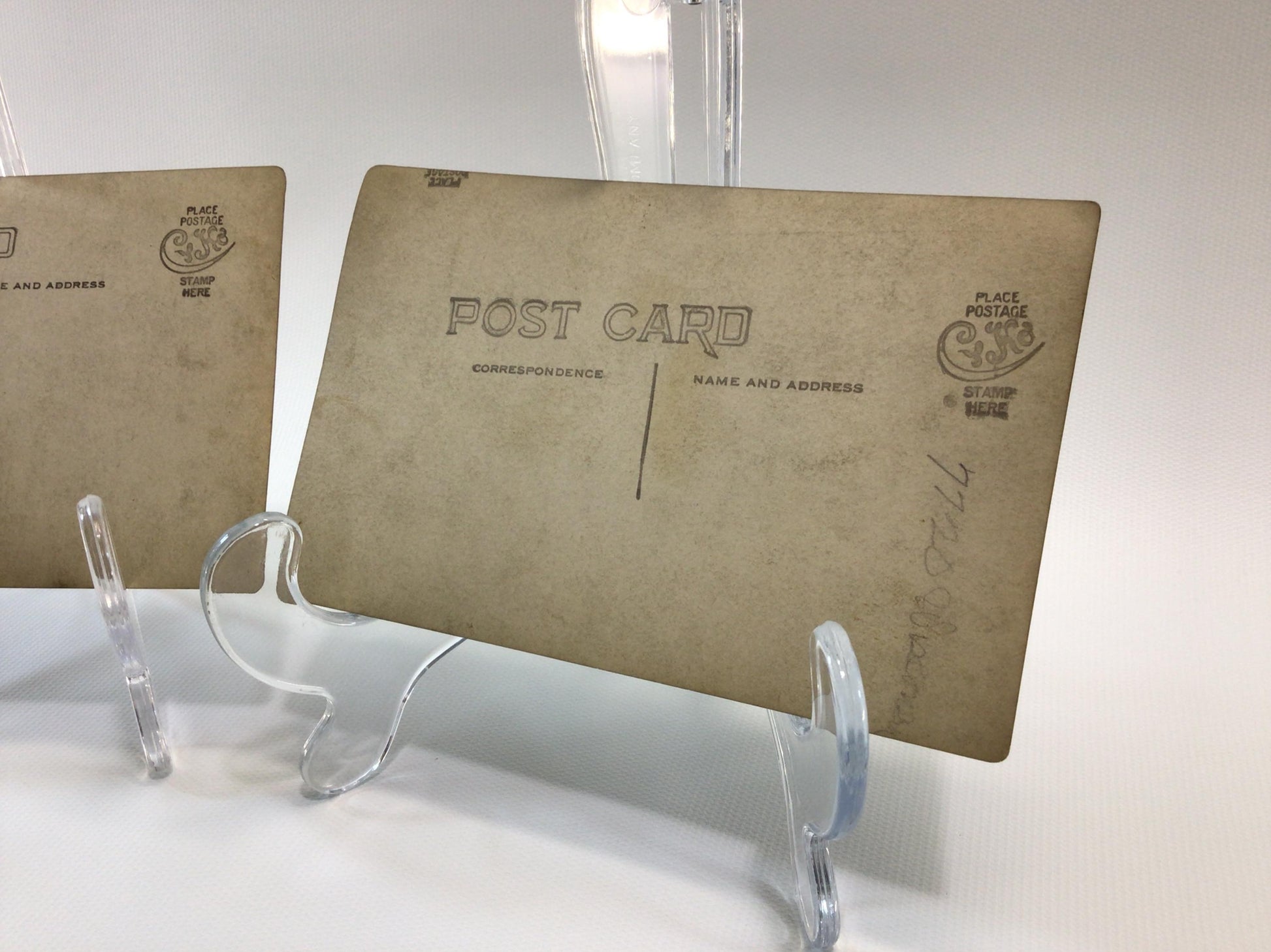 Cards are in fair condition, they have, uneven borders, age discoloring, corner rounding and edge wear. Pencil writing on backside of one card.