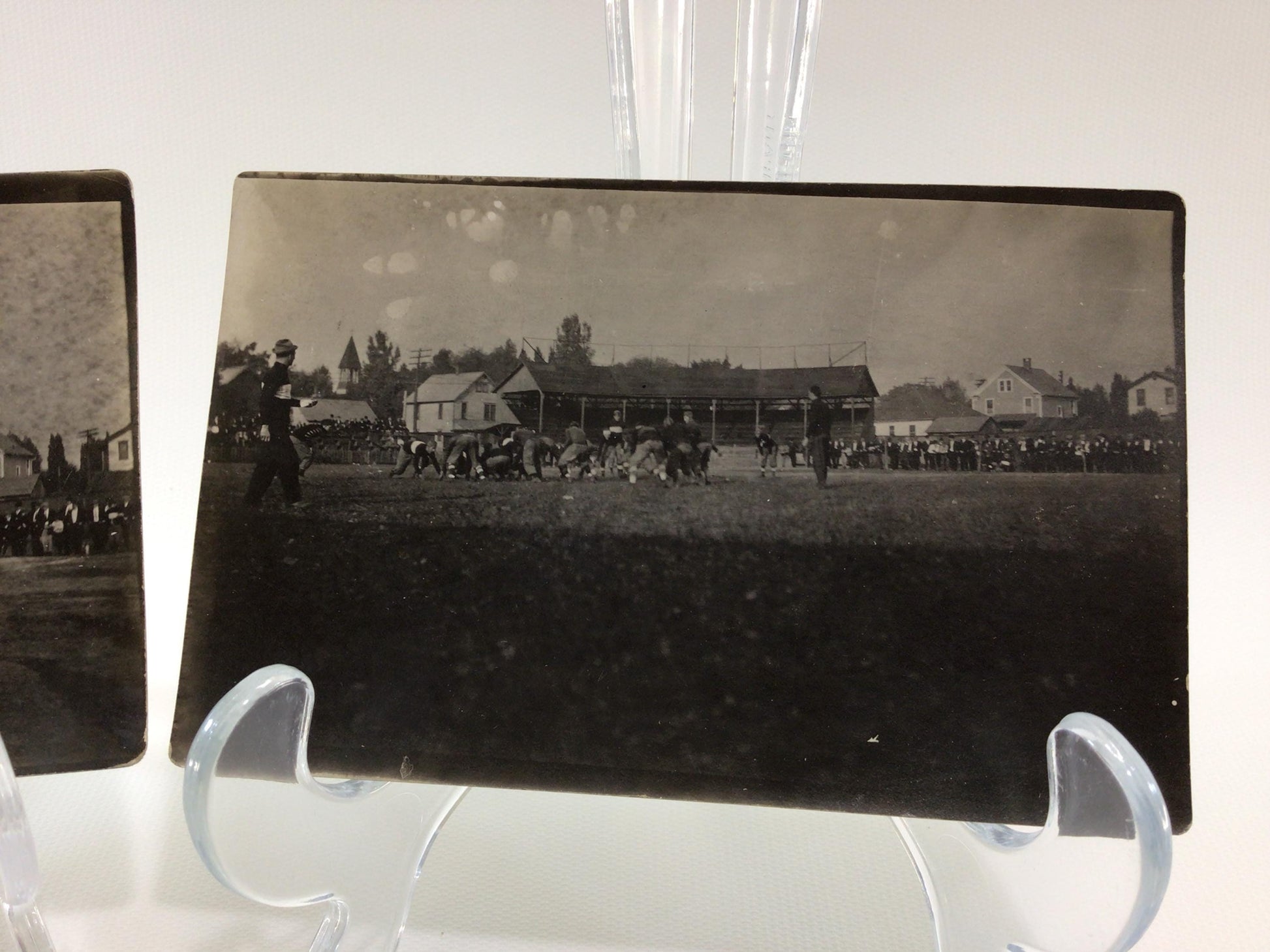 Antique Ephemera RPPC Real Photo Postcards Football Game At the Line and Punting from the End Zone.