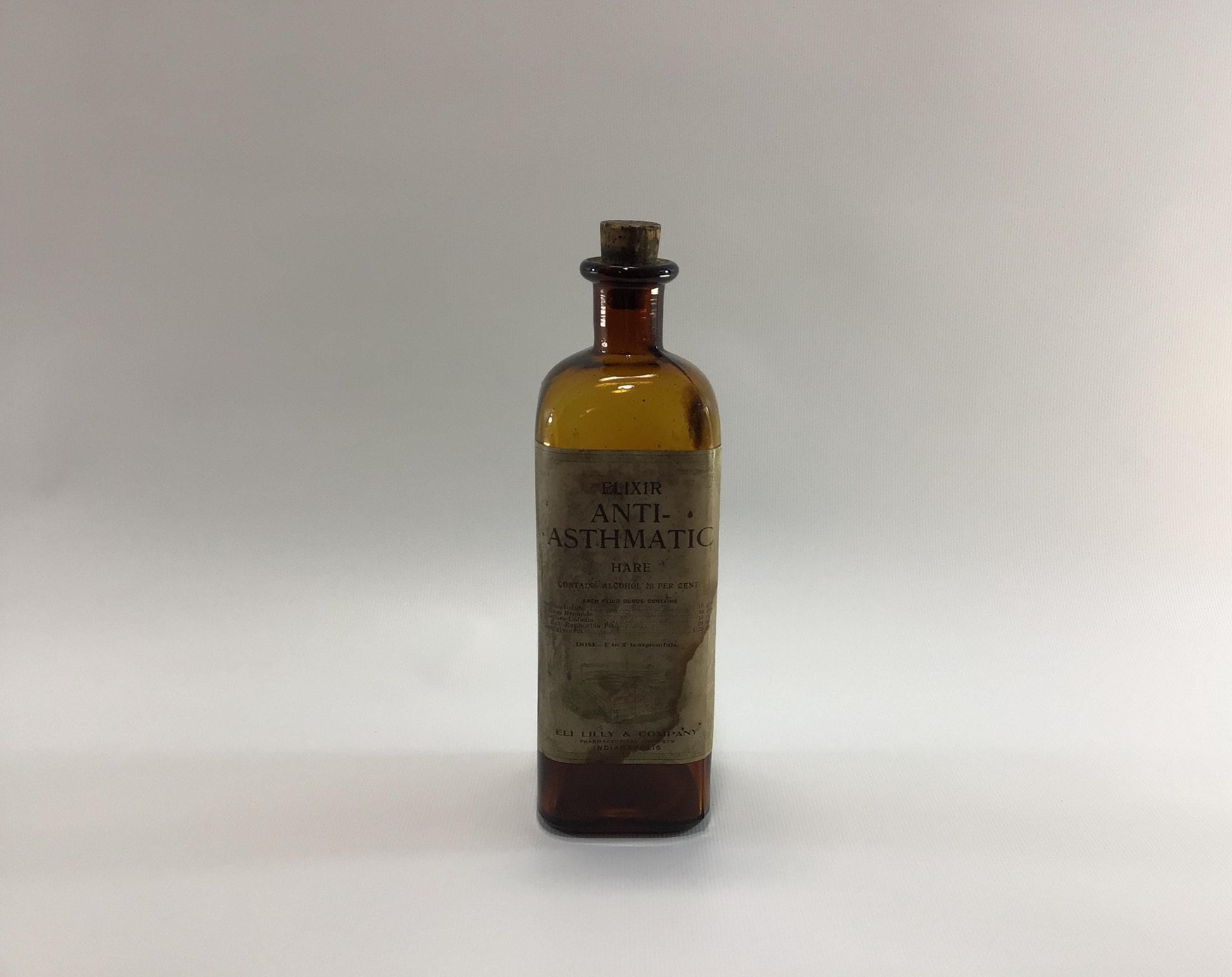 Antique Home Remedies Cork Top Paper Label Bottle Anti-Asthmatic Elixir Eli Lilly Company Indianapolis