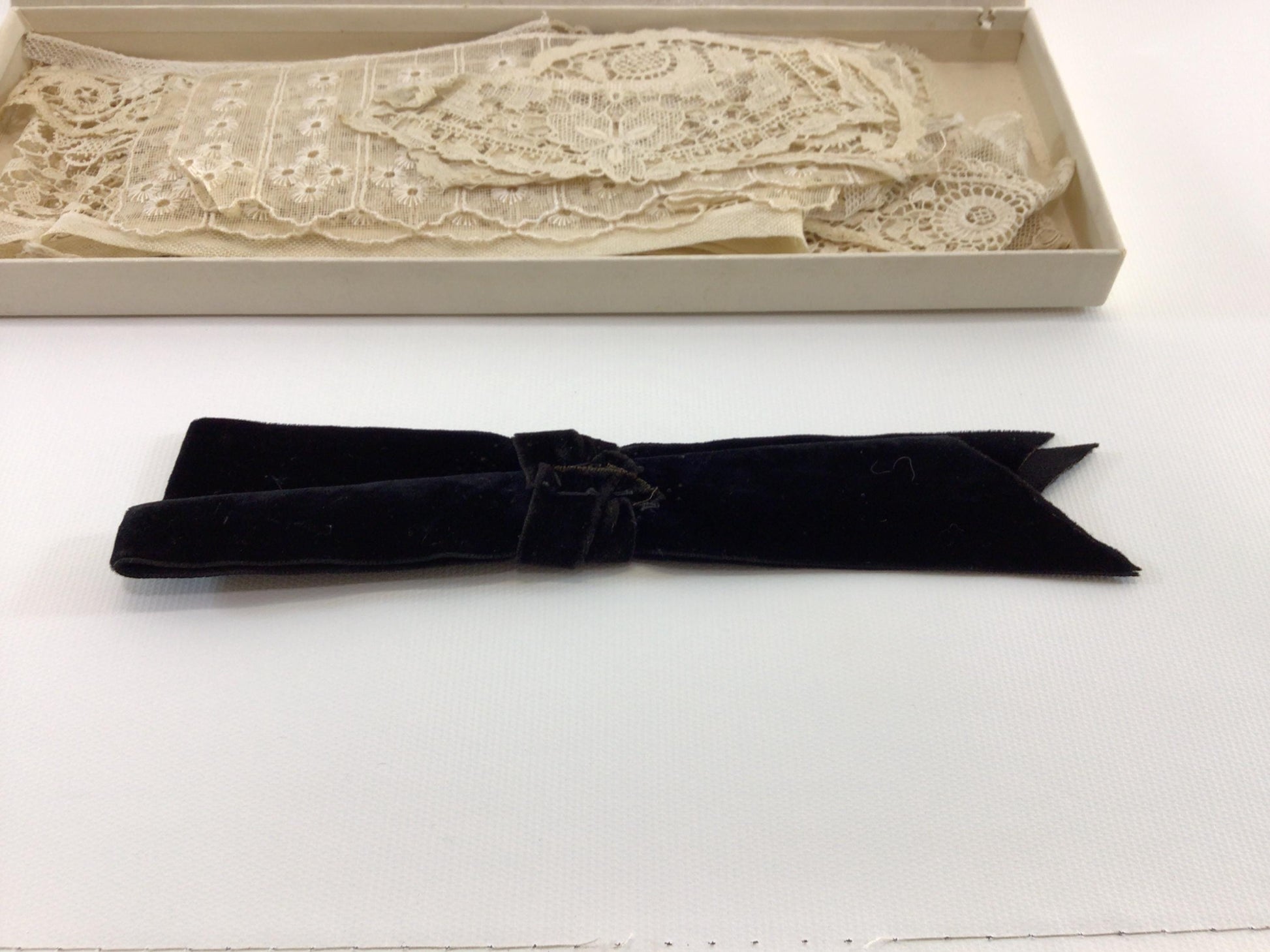 Antique Lace and Bow Machine Made Ecru Cream Collar Dress Remnants Scraps.