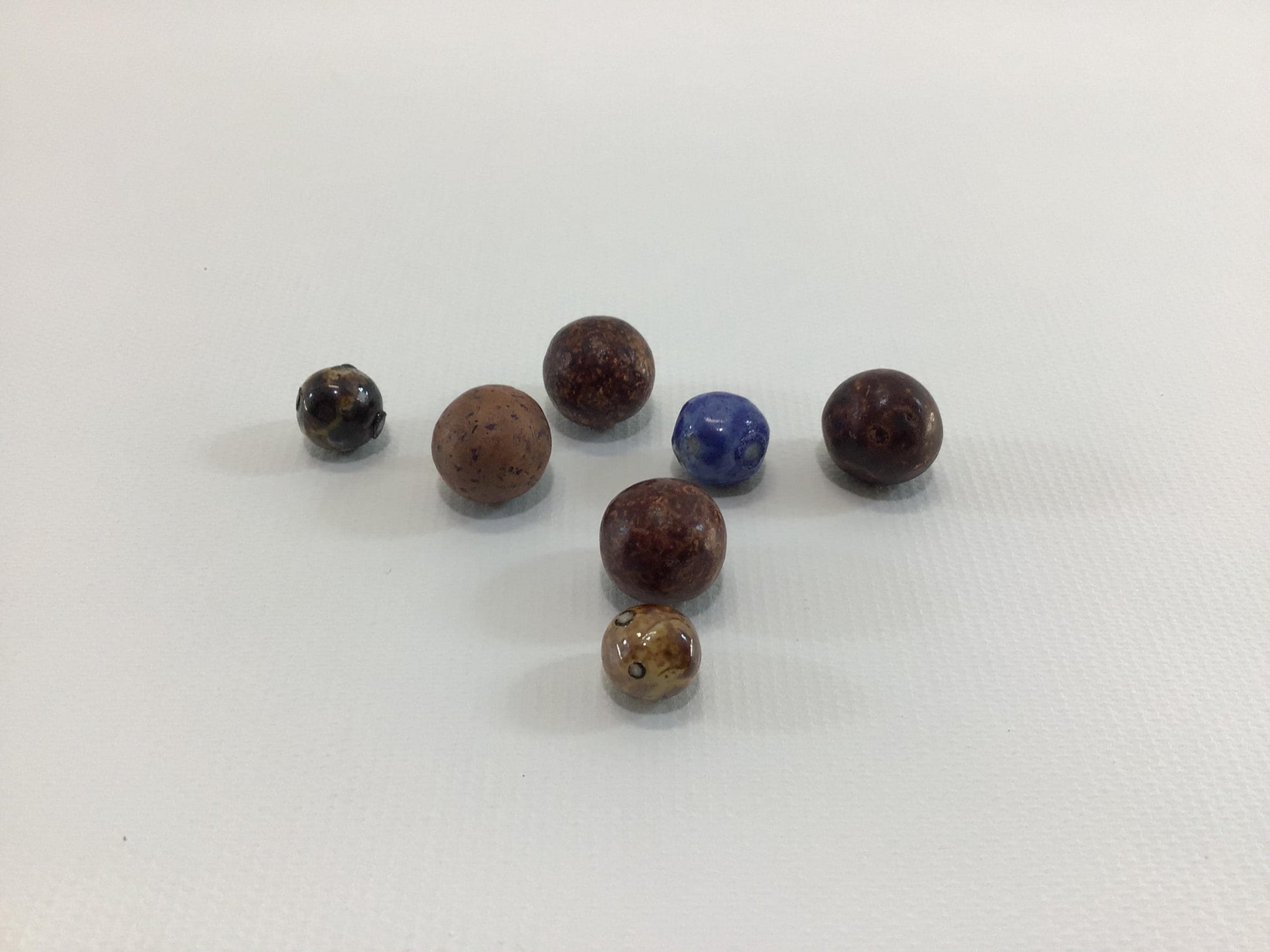 Antique Marbles Lot of 7 Primitive Handmade Toy Game Pieces Bennington PeeWee's and Early American Clay