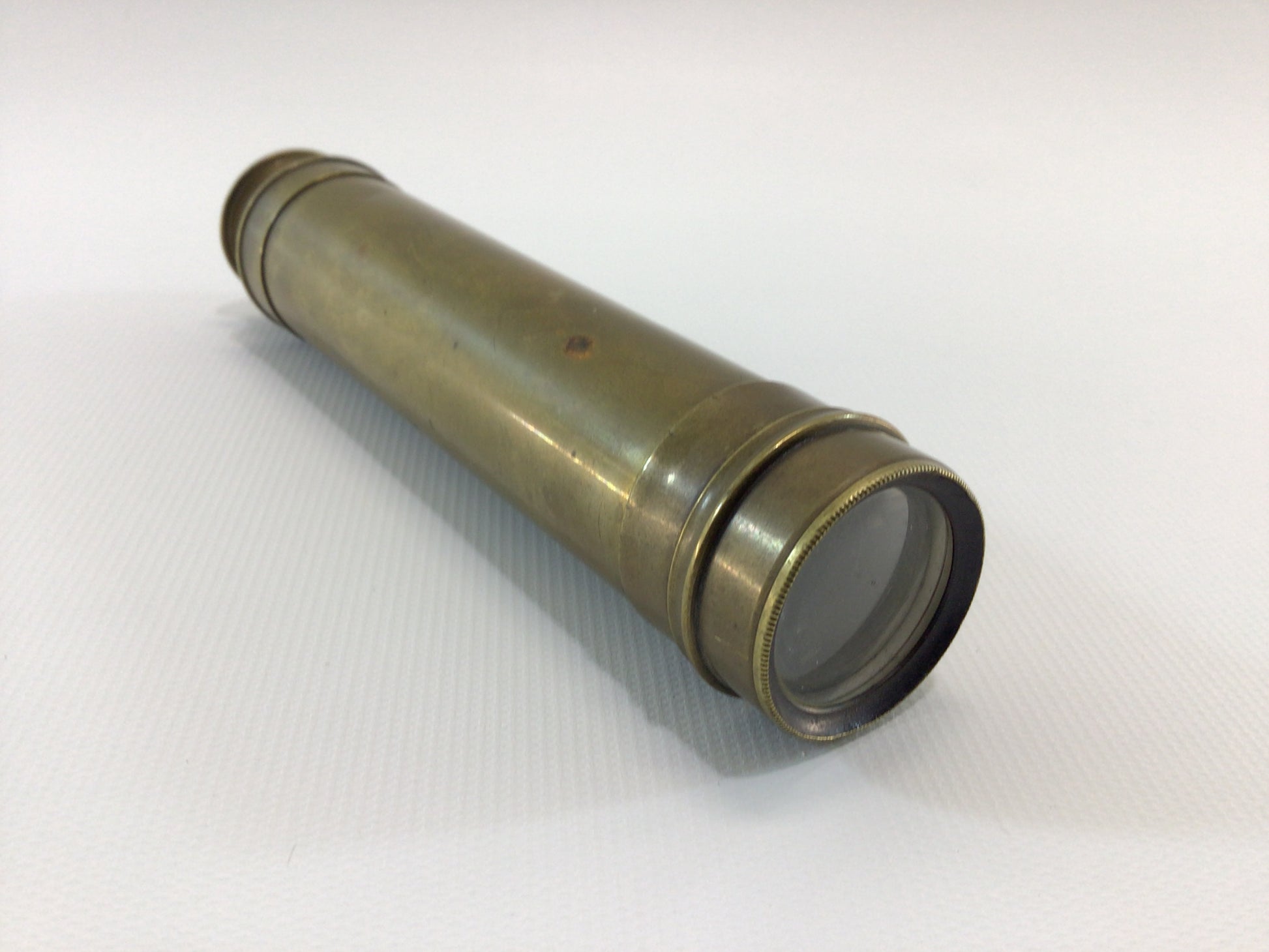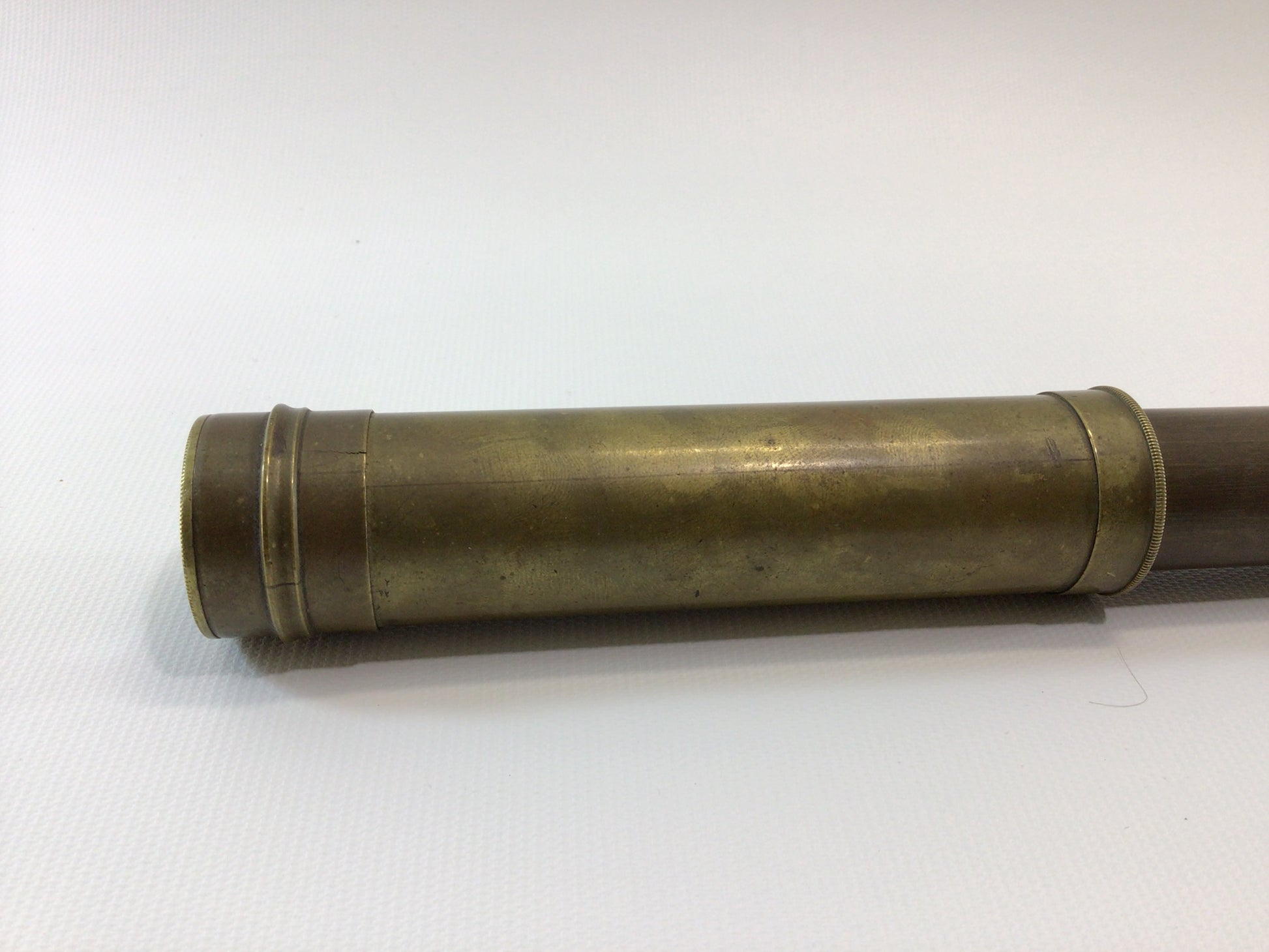 Scope is in fair, solid, working condition, brass has some minor dents and splits, also has aged tarnish patina. Extended it measures approx. 16" long.