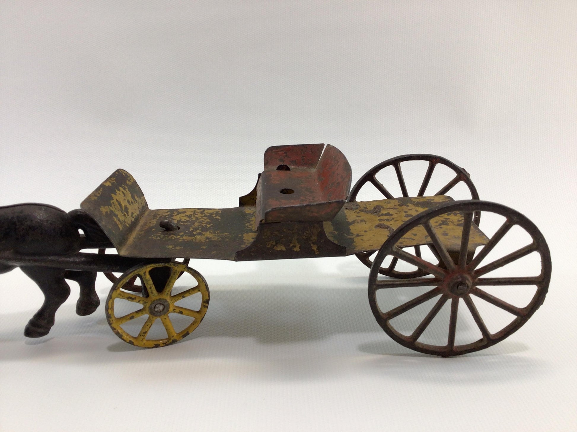 Antique Toy Horse and Buckboard Wagon Cast Iron and Pressed Steel Construction.