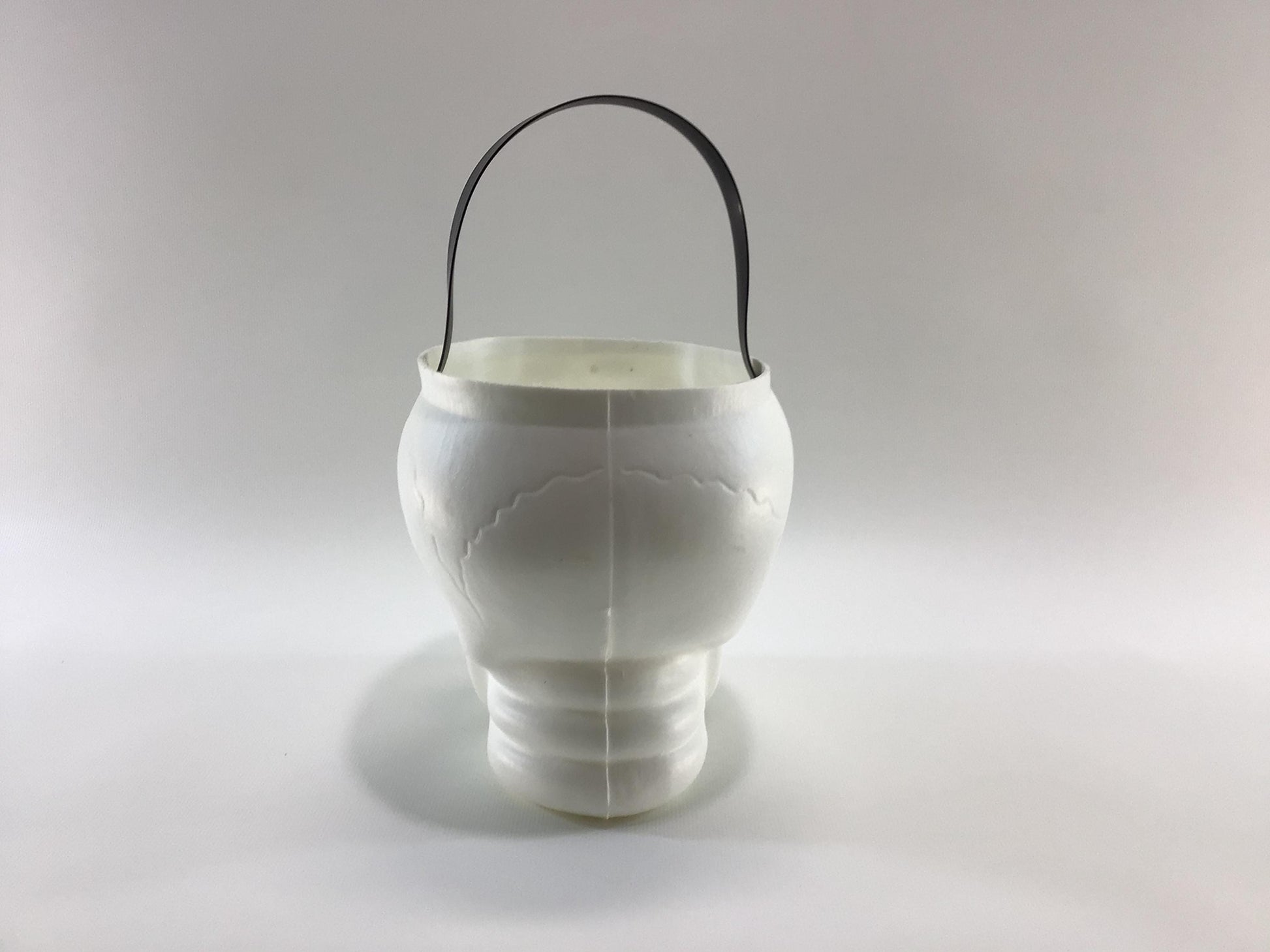 Bayshore Blow Mold Skull Trick or Treat Pail Candy Container Vintage Halloween Holiday Ephemera.