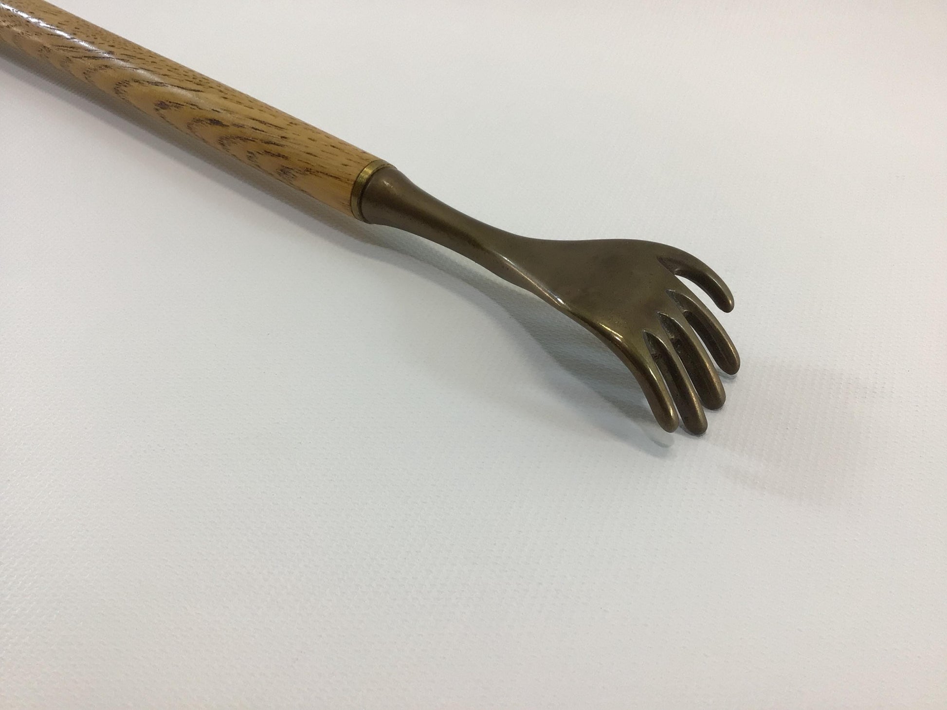 Brass Hand 19" Back Scratcher Quality Made Vintage Solid Oak Wood Handle