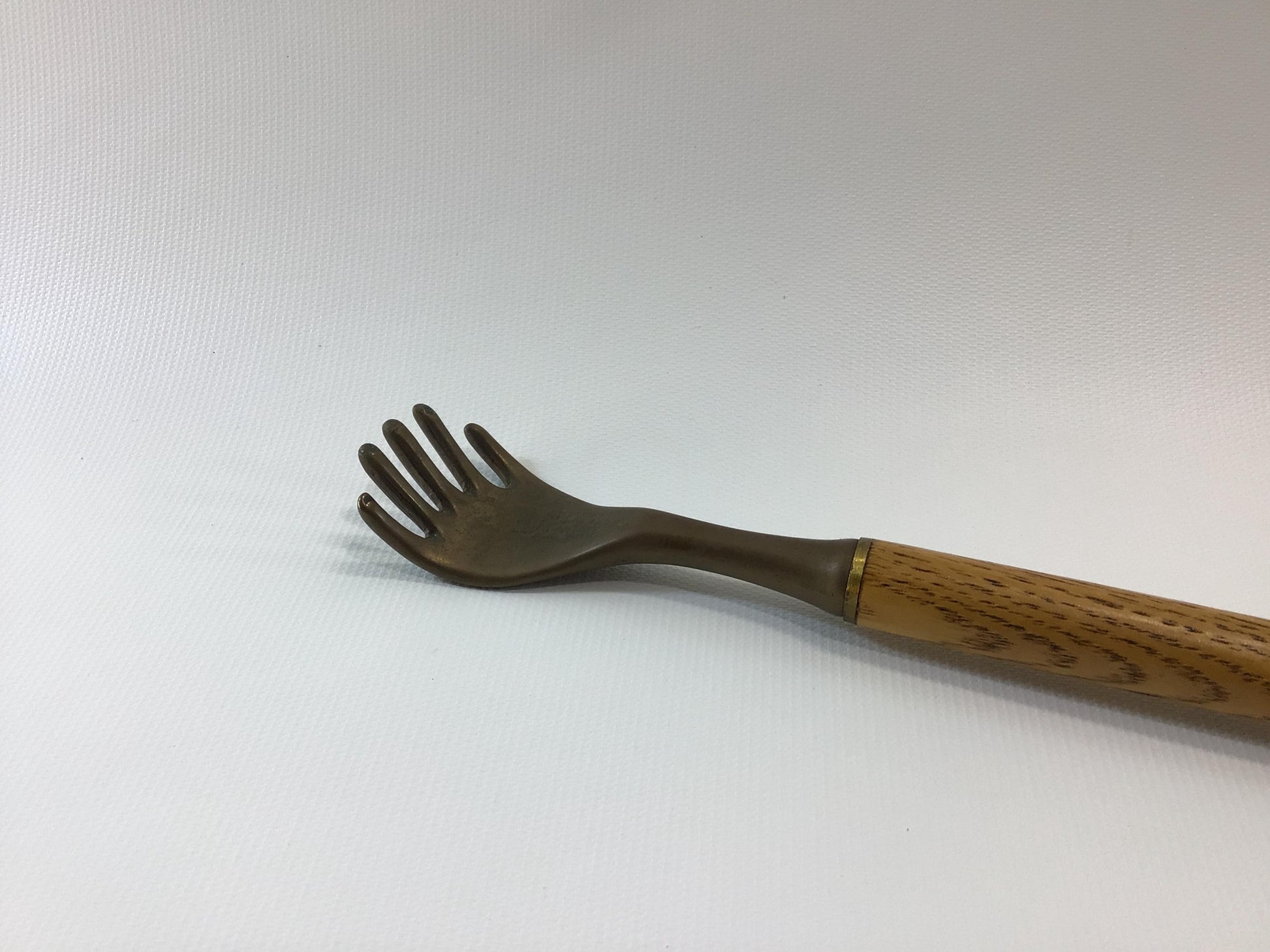 Brass Hand 19" Back Scratcher Quality Made Vintage Solid Oak Wood Handle.