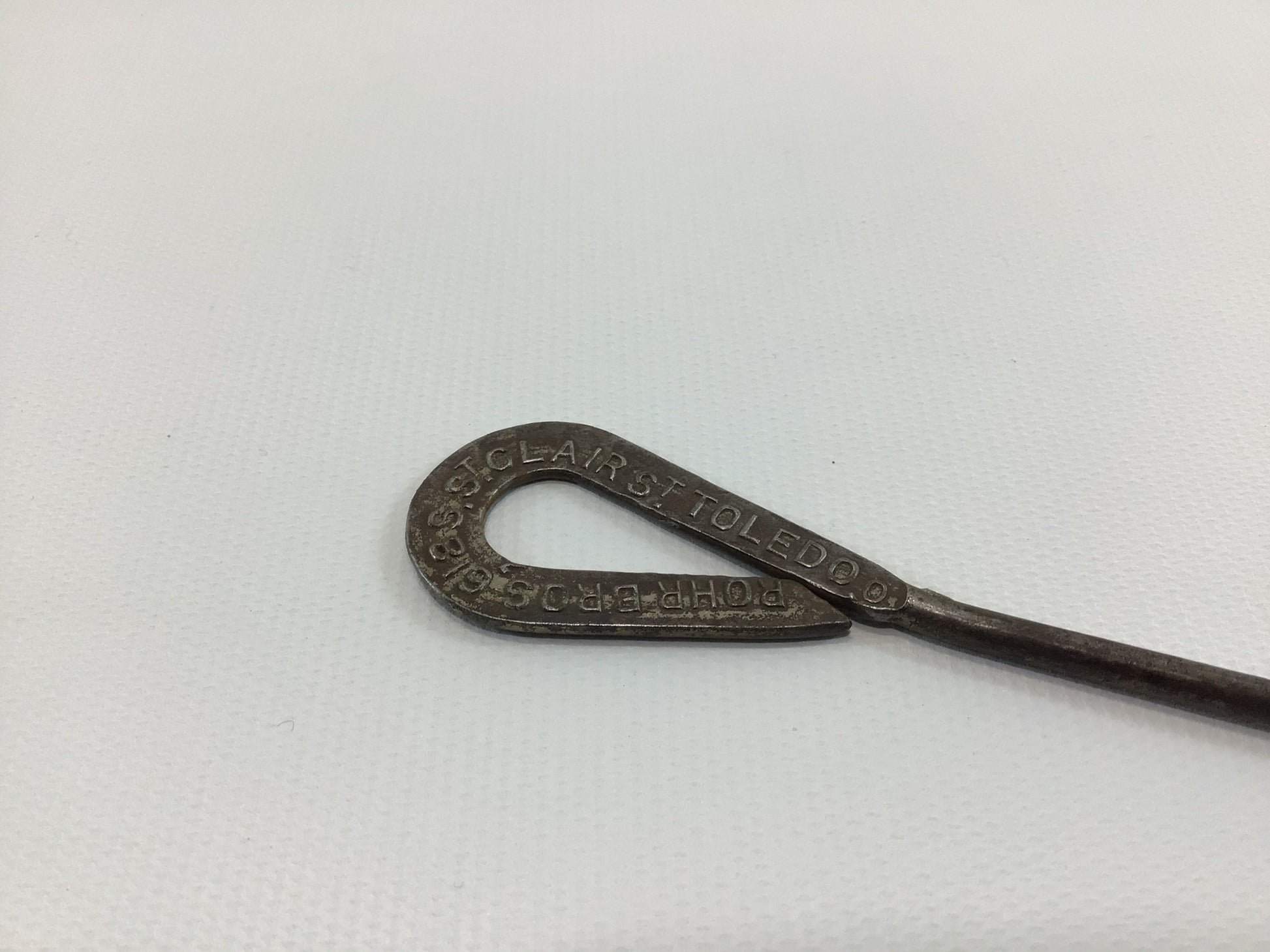 Button Hook Rohr Bros Toledo Ohio Antique Advertising Giveaway Edwardian Hand Tool Gadget for Shoes Gloves Corsets.