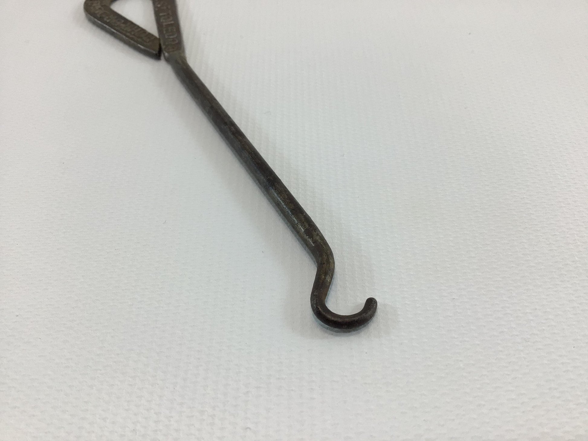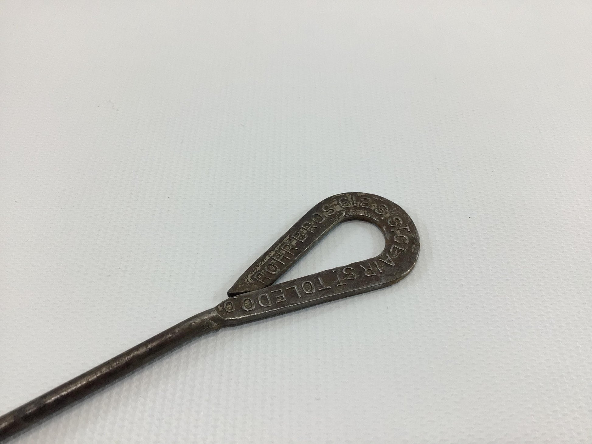 A nice little advertising button hook in fair condition, has considerable oxidation rusting.