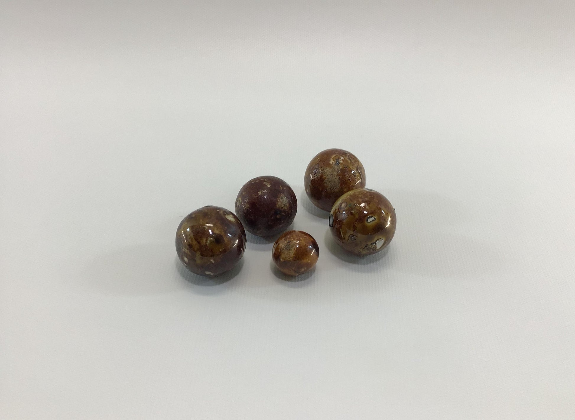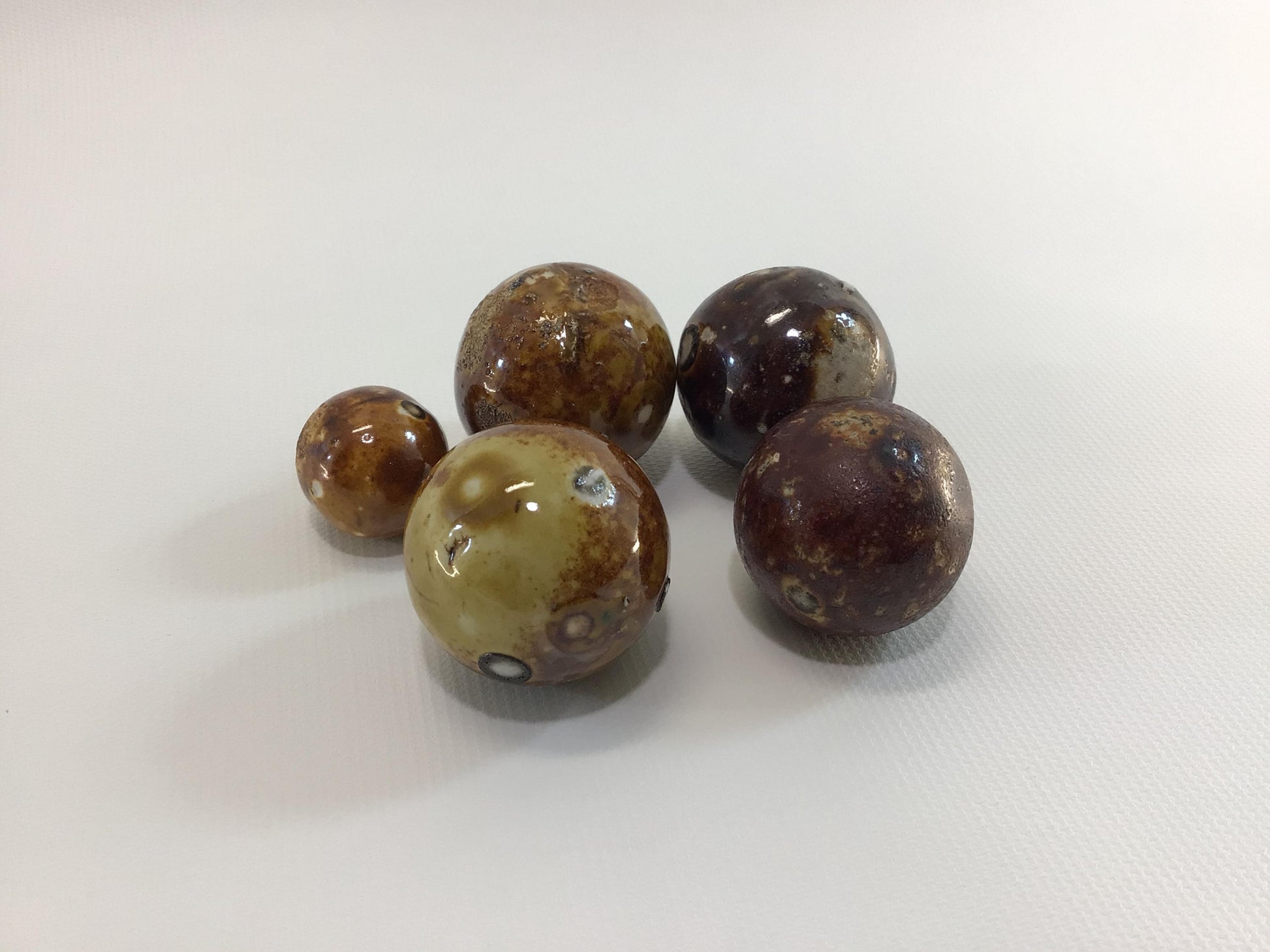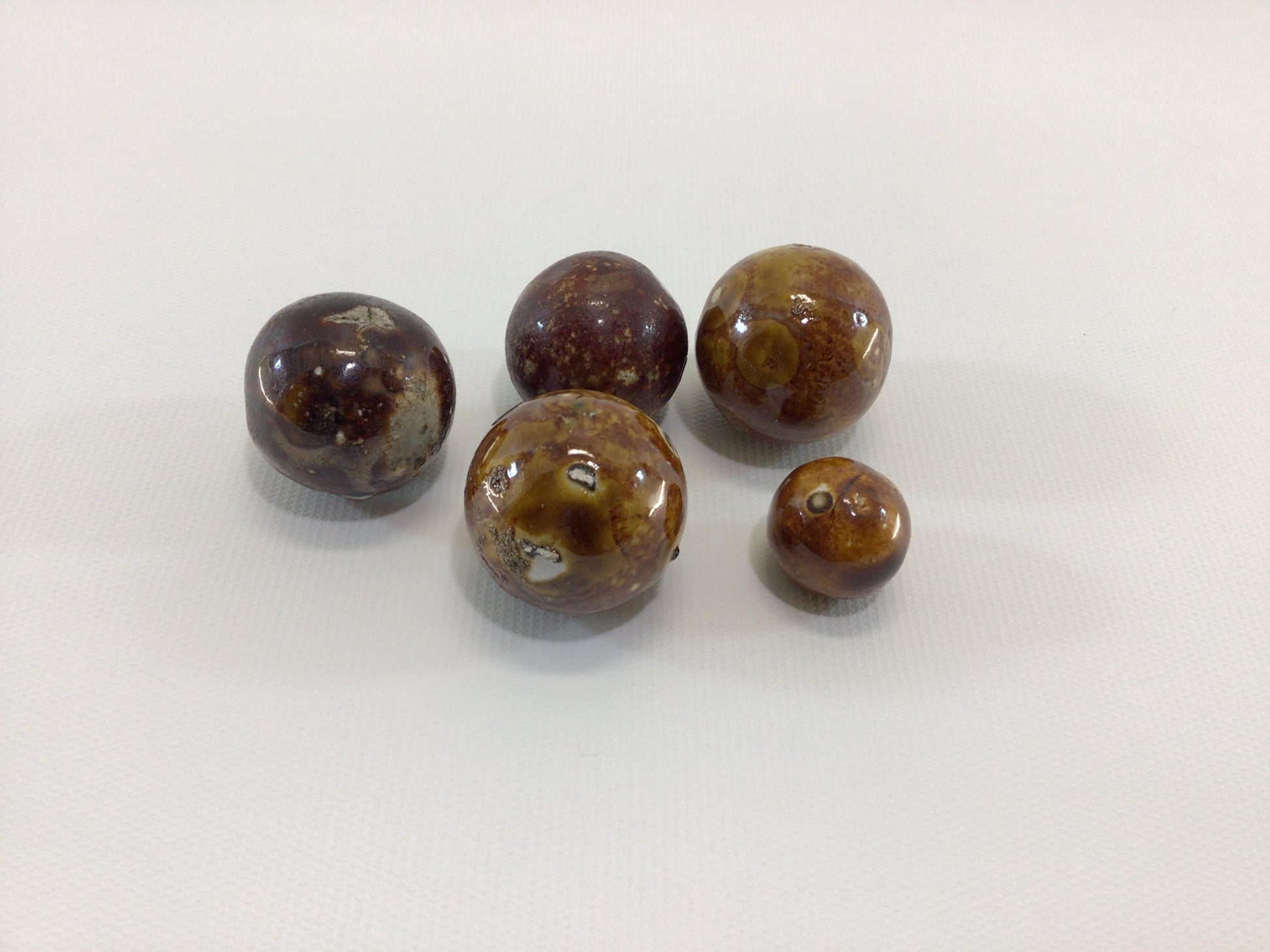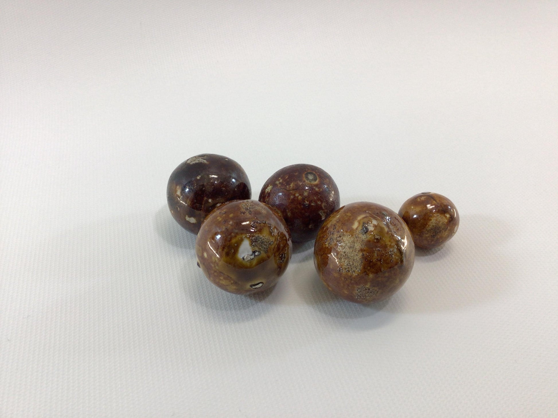 Clay Bennington Marbles Lot of 5 Large Brown Shooters Antique Primitive Handmade Toy Game Pieces.