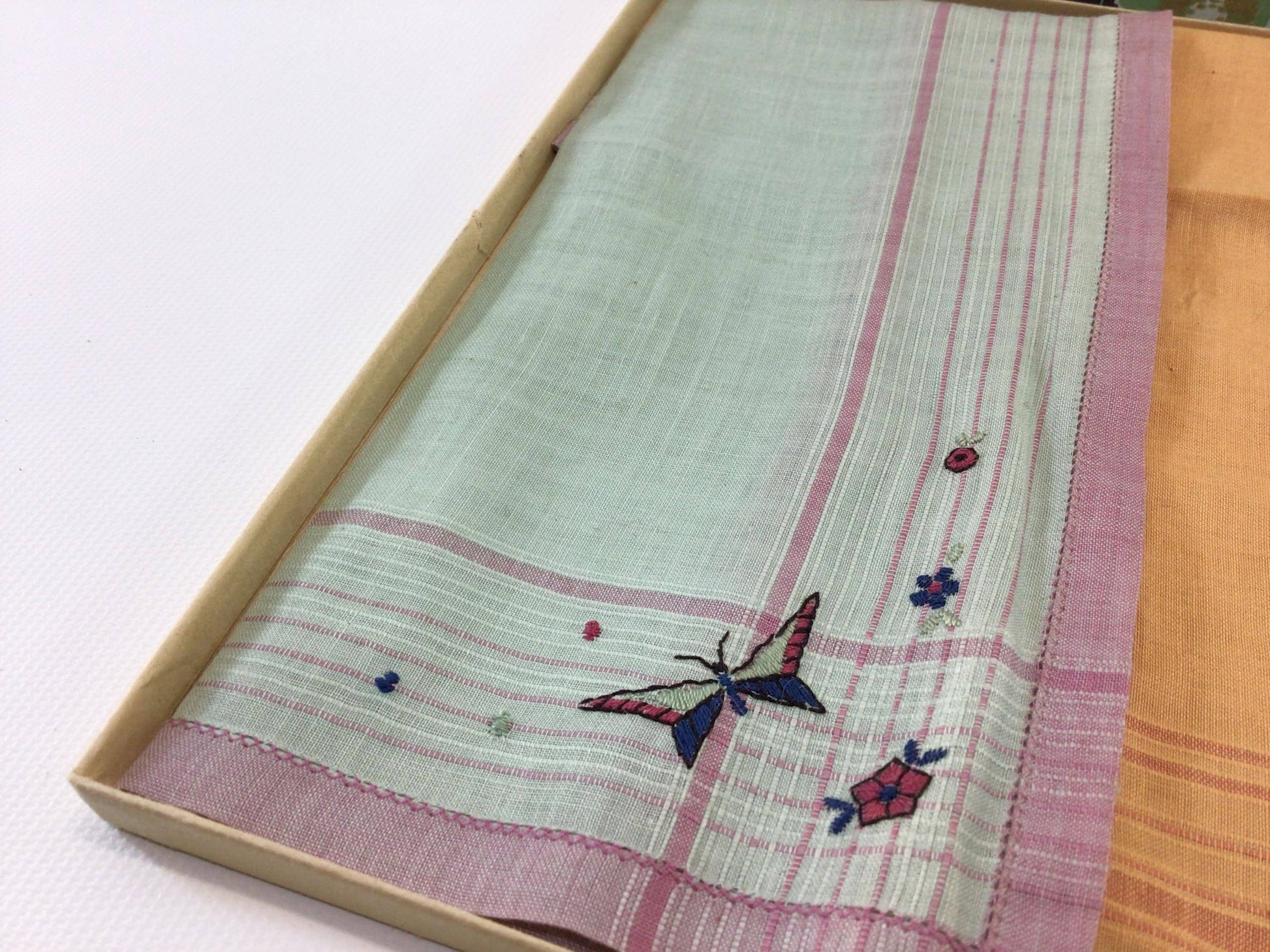 Embroidered Linen Vintage Ladies Handkerchiefs in Original Gift Box.