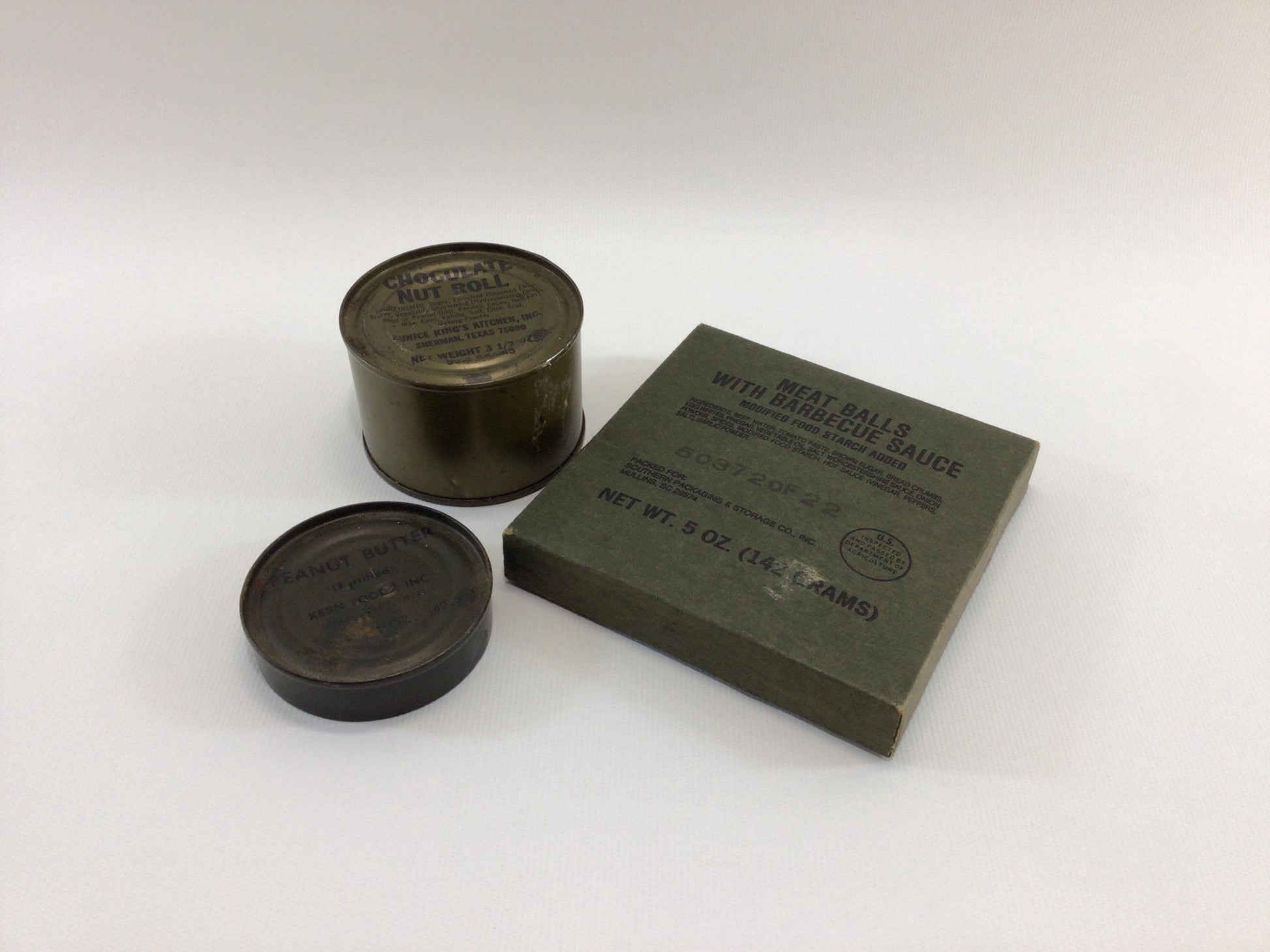 Food Rations Lot Vintage 1980 MRE Meatballs Barbecue Sauce Nut Roll Peanut Butter