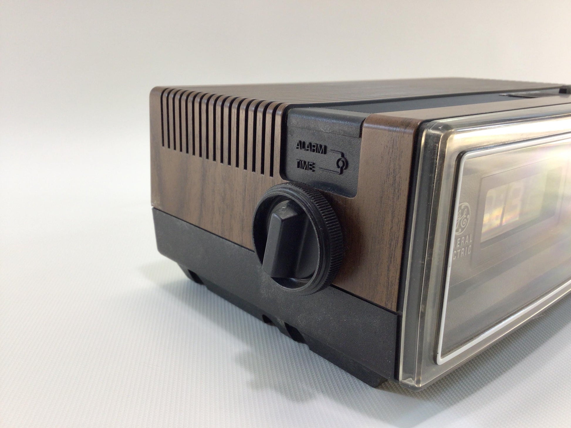 General Electric GE Flip Alarm Clock AM/FM Radio Model 7-4305C Vintage Electronics Device.