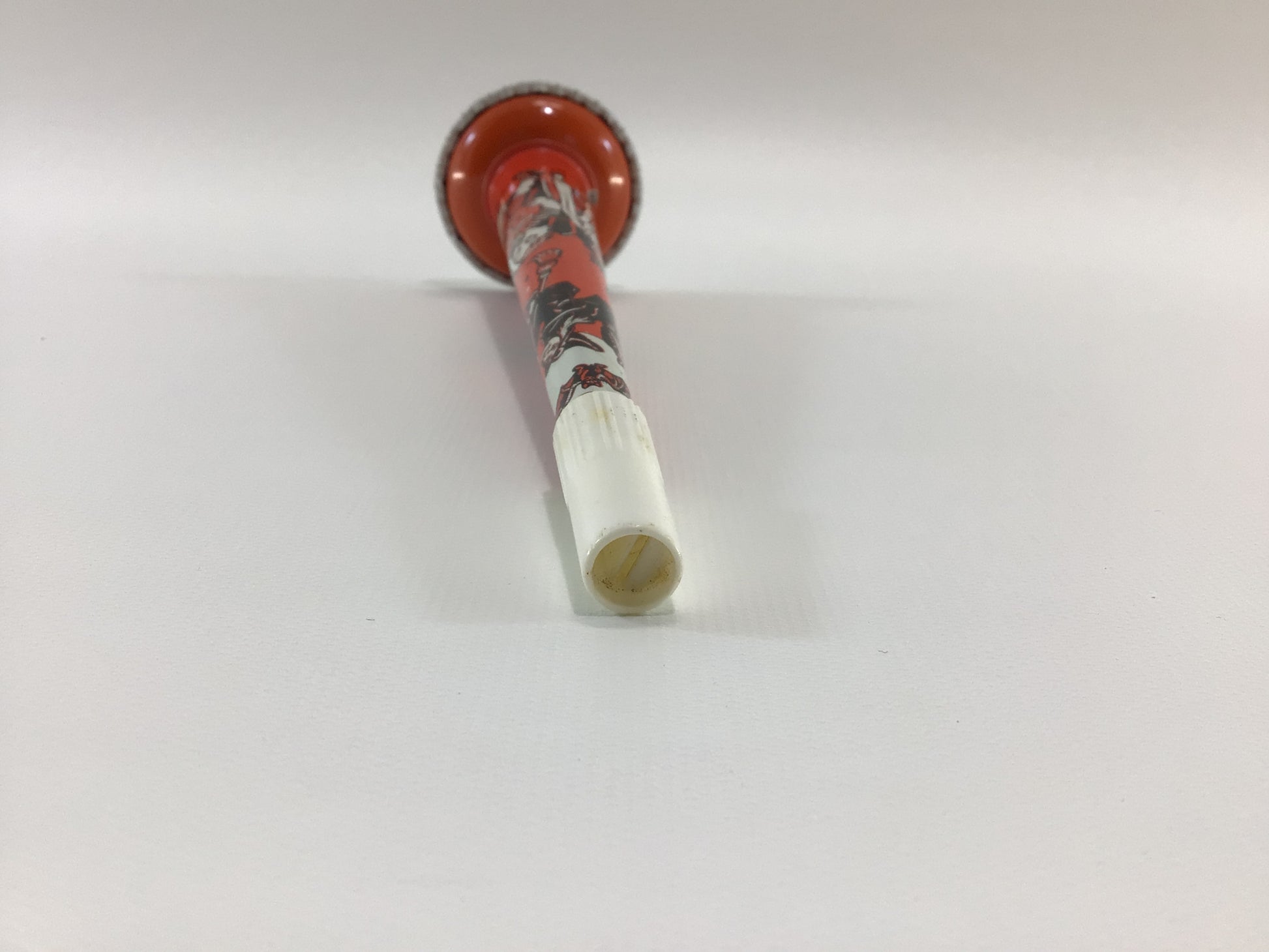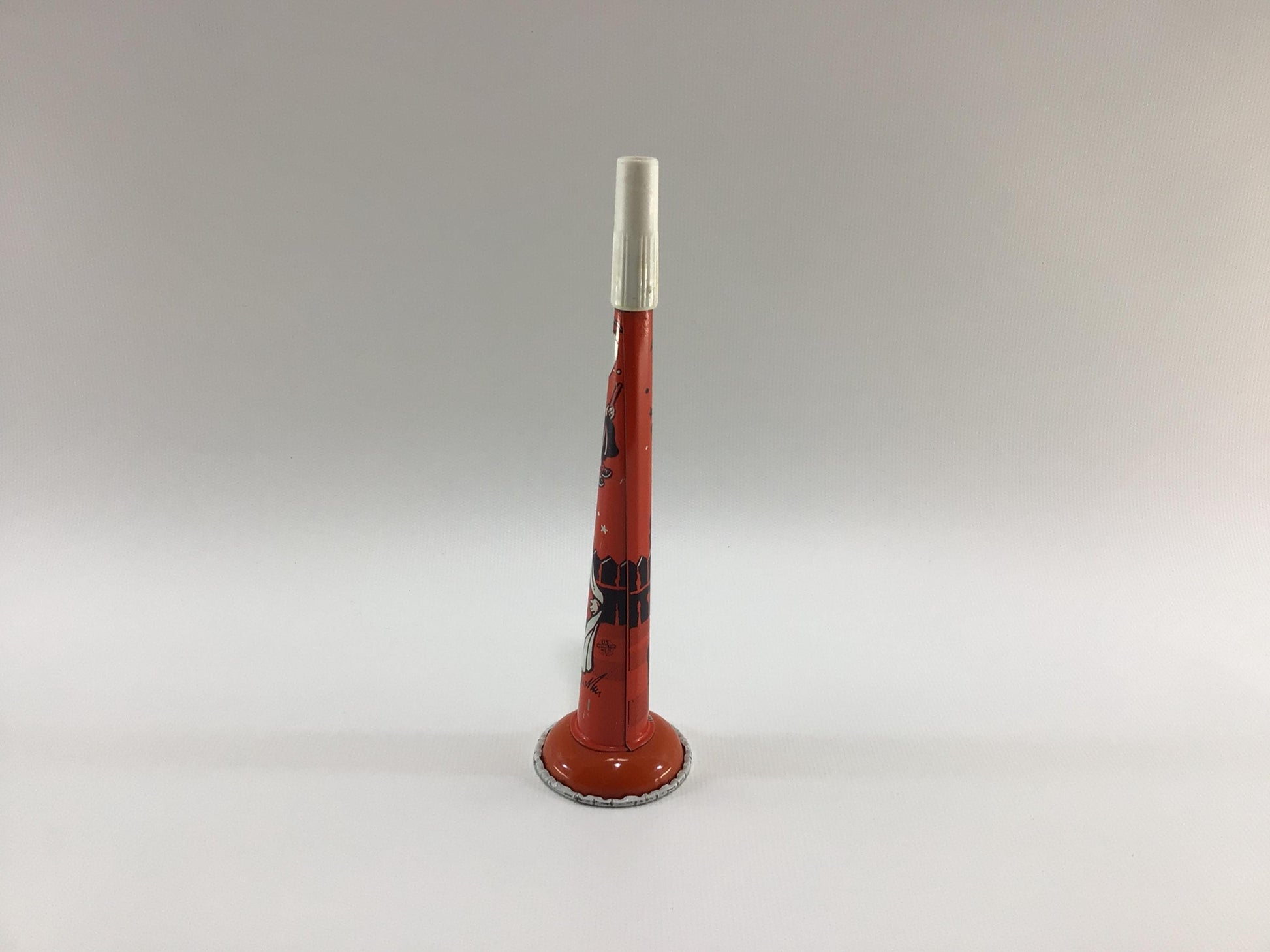 Halloween Party Horn 7" Tin Lithograph US Metal Toy Noise Maker Vintage Holiday Ephemera.