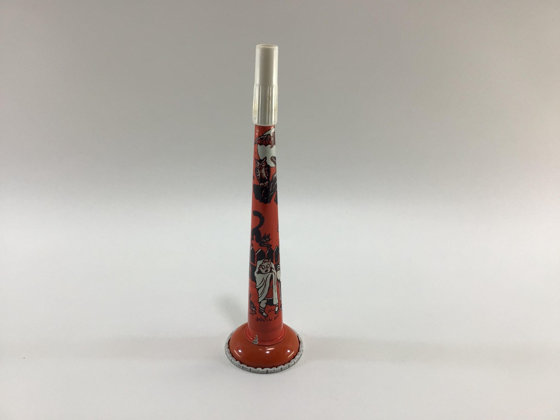 Halloween Party Horn 7" Tin Lithograph US Metal Toy Noise Maker Vintage Holiday Ephemera