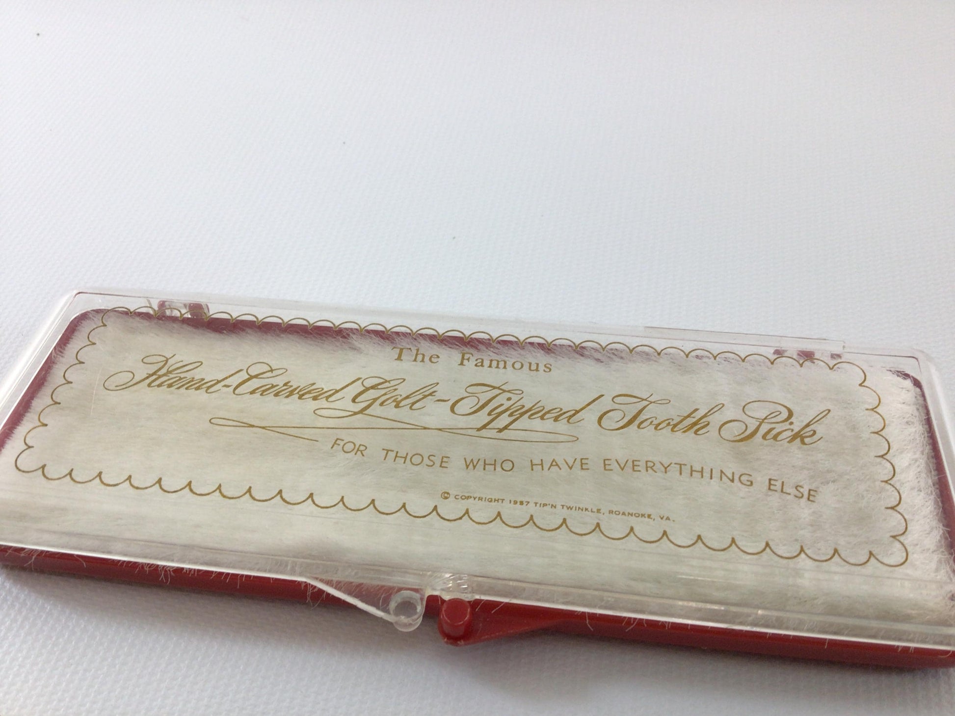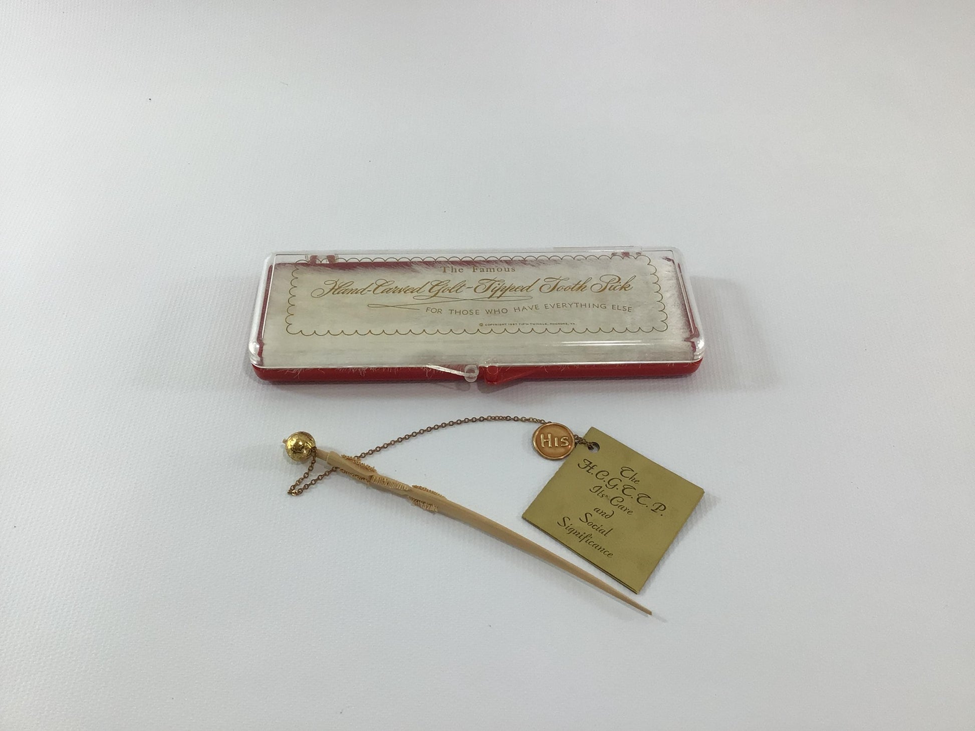 Hand Carved Golt Tipped Tooth Pick Vintage Novelty Gift.