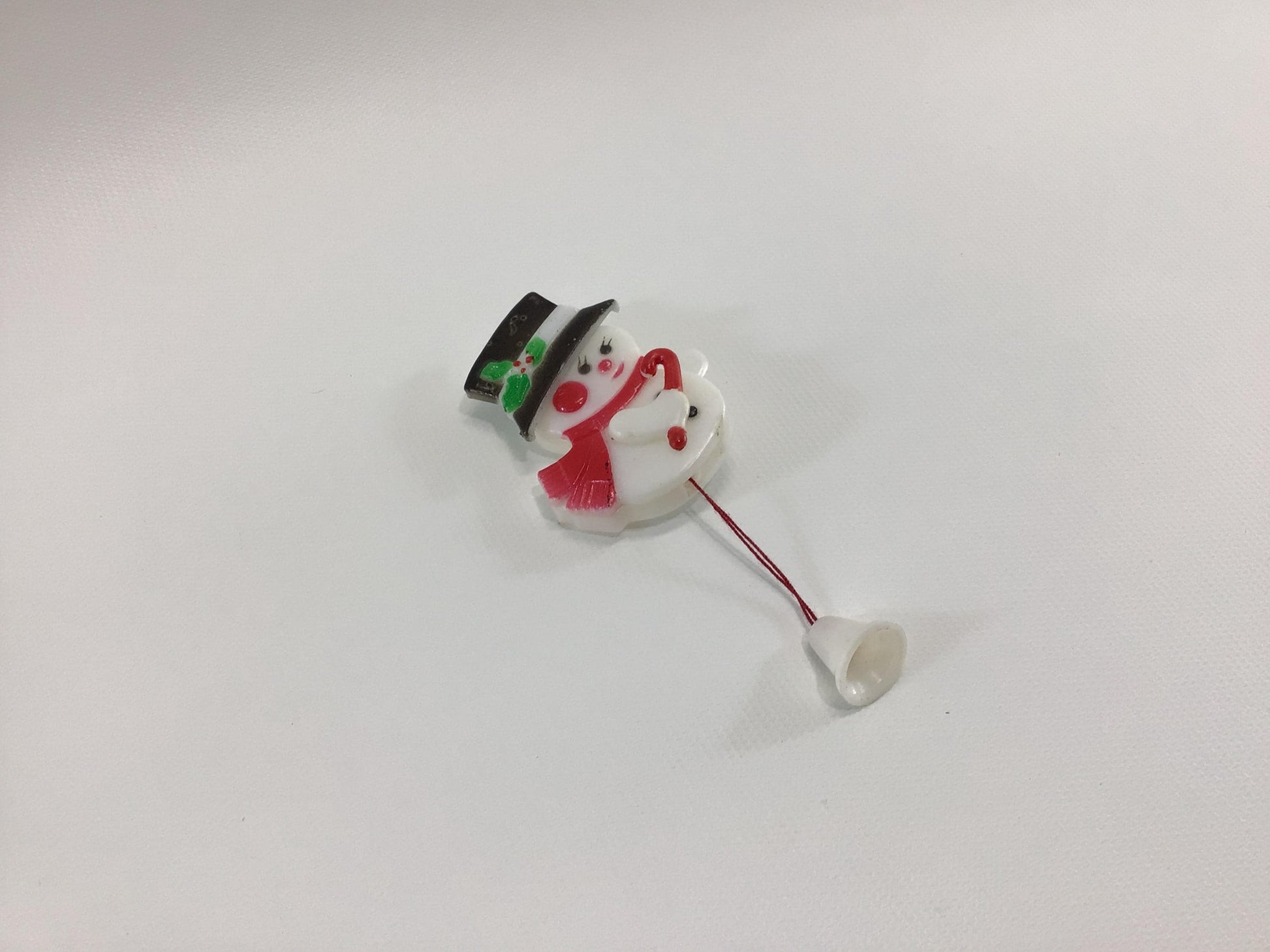 Hard Plastic Articulated Snowman Brooch Vintage Christmas Pull Toy Pin 1970s Christmas Kitschy Nostalgic Holiday Jewelry.