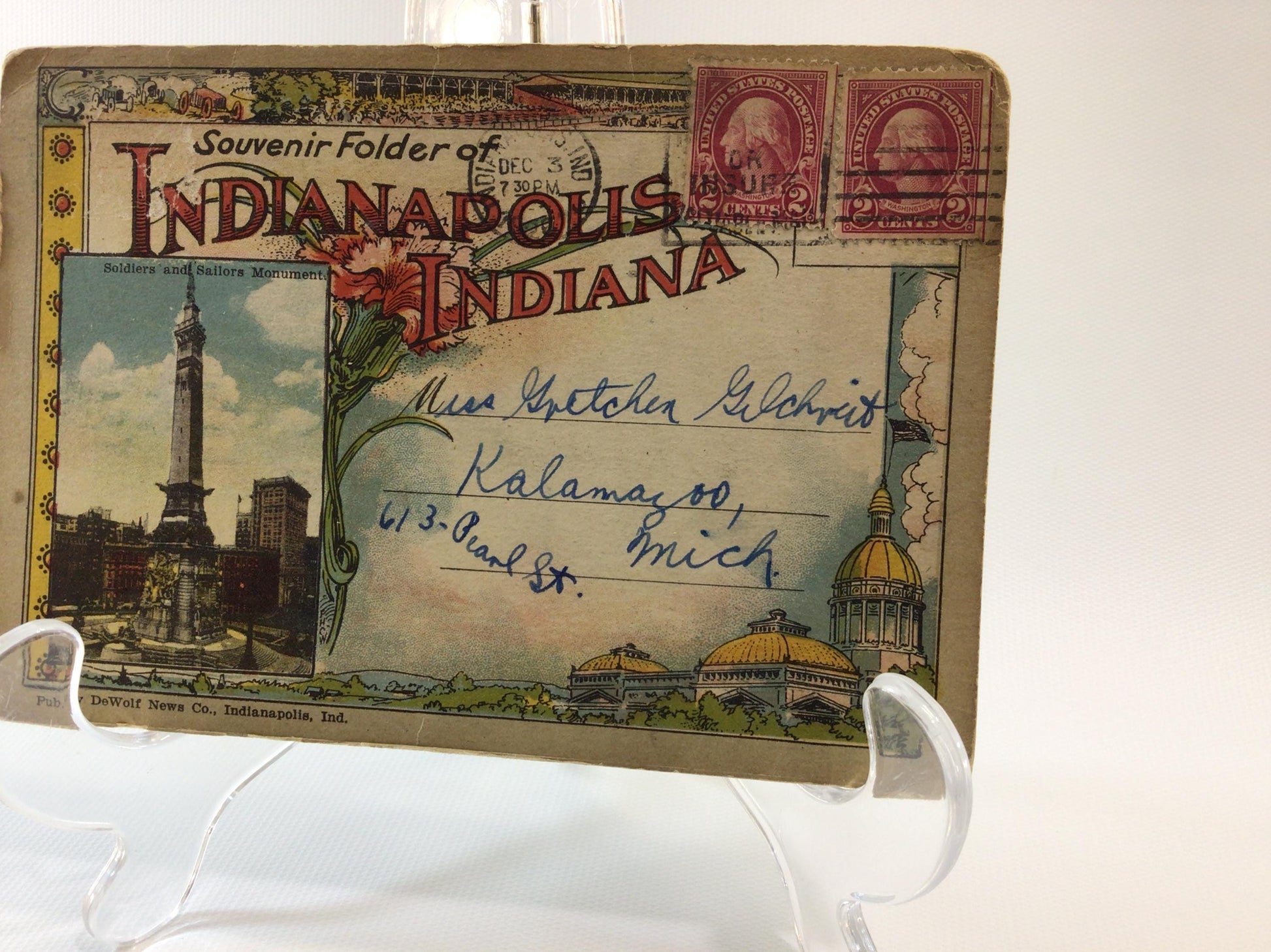 Indianapolis Indiana Foldout Souvenir Postcard Antique Collectible Ephemera.