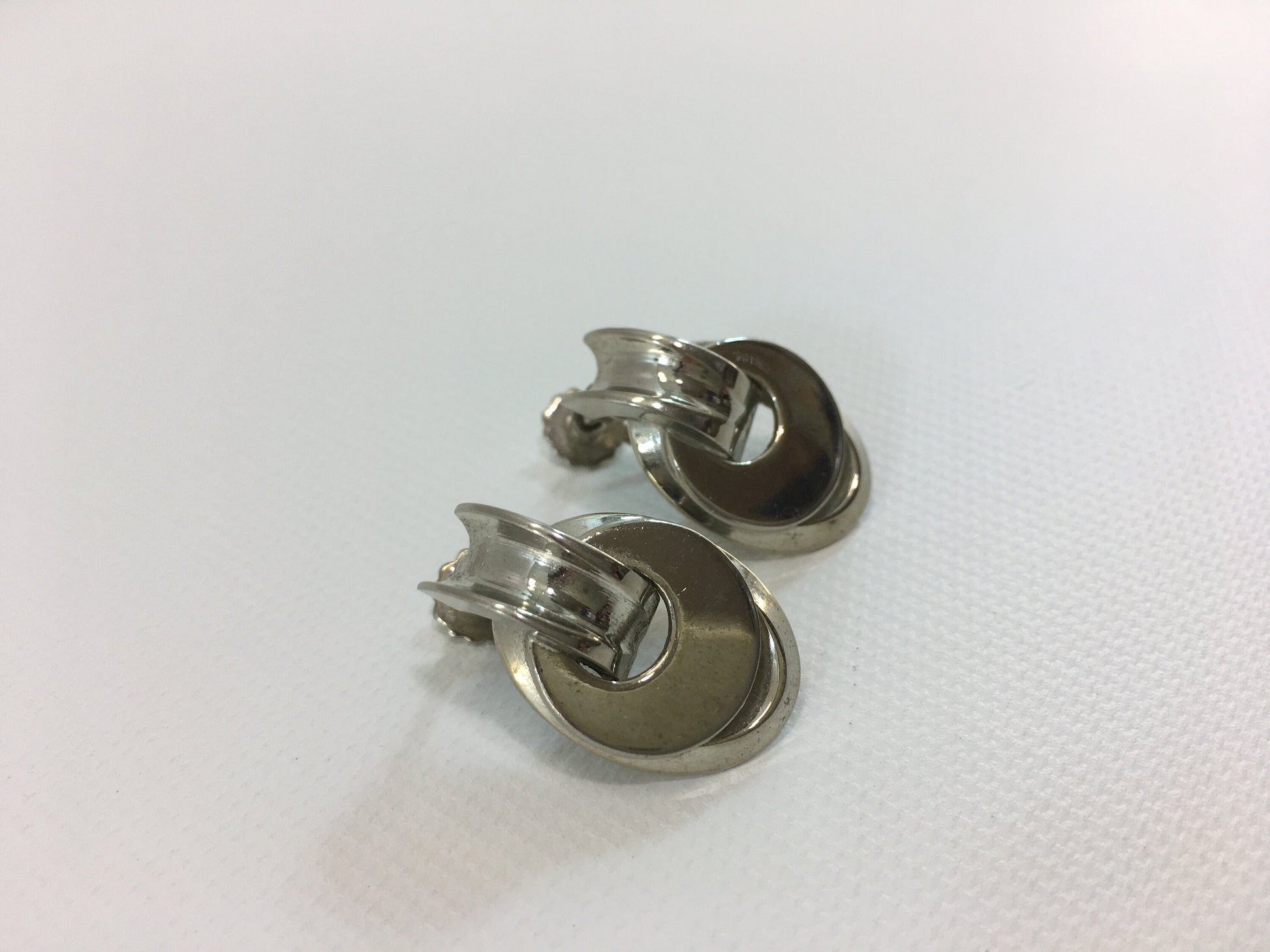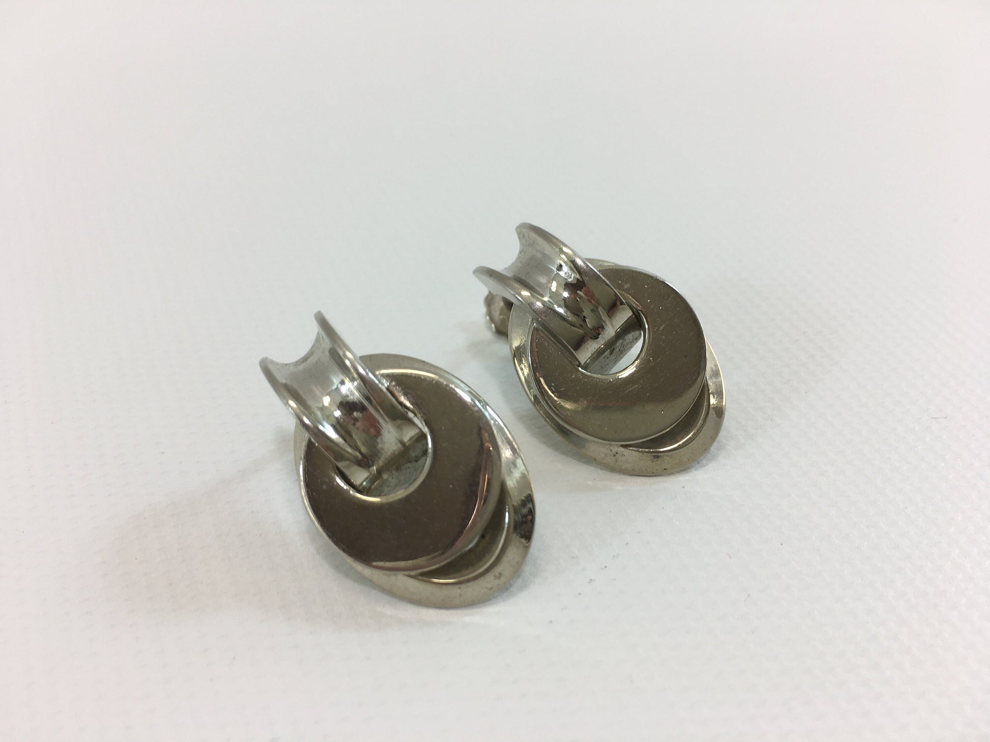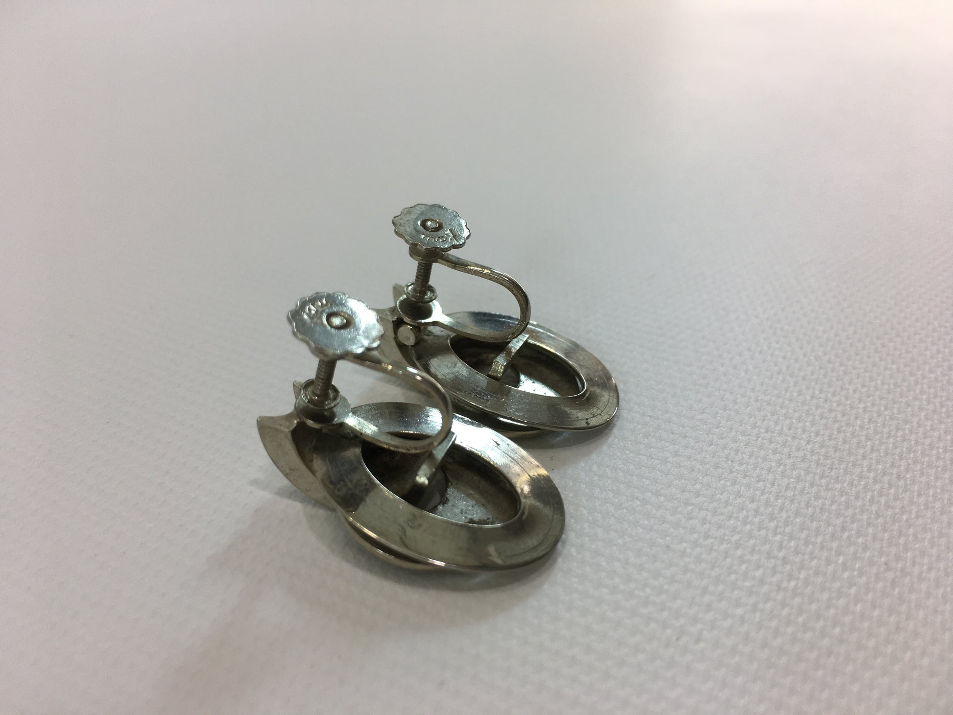 Karu Silver Tone Earrings Screw Back Oval Geometric Design