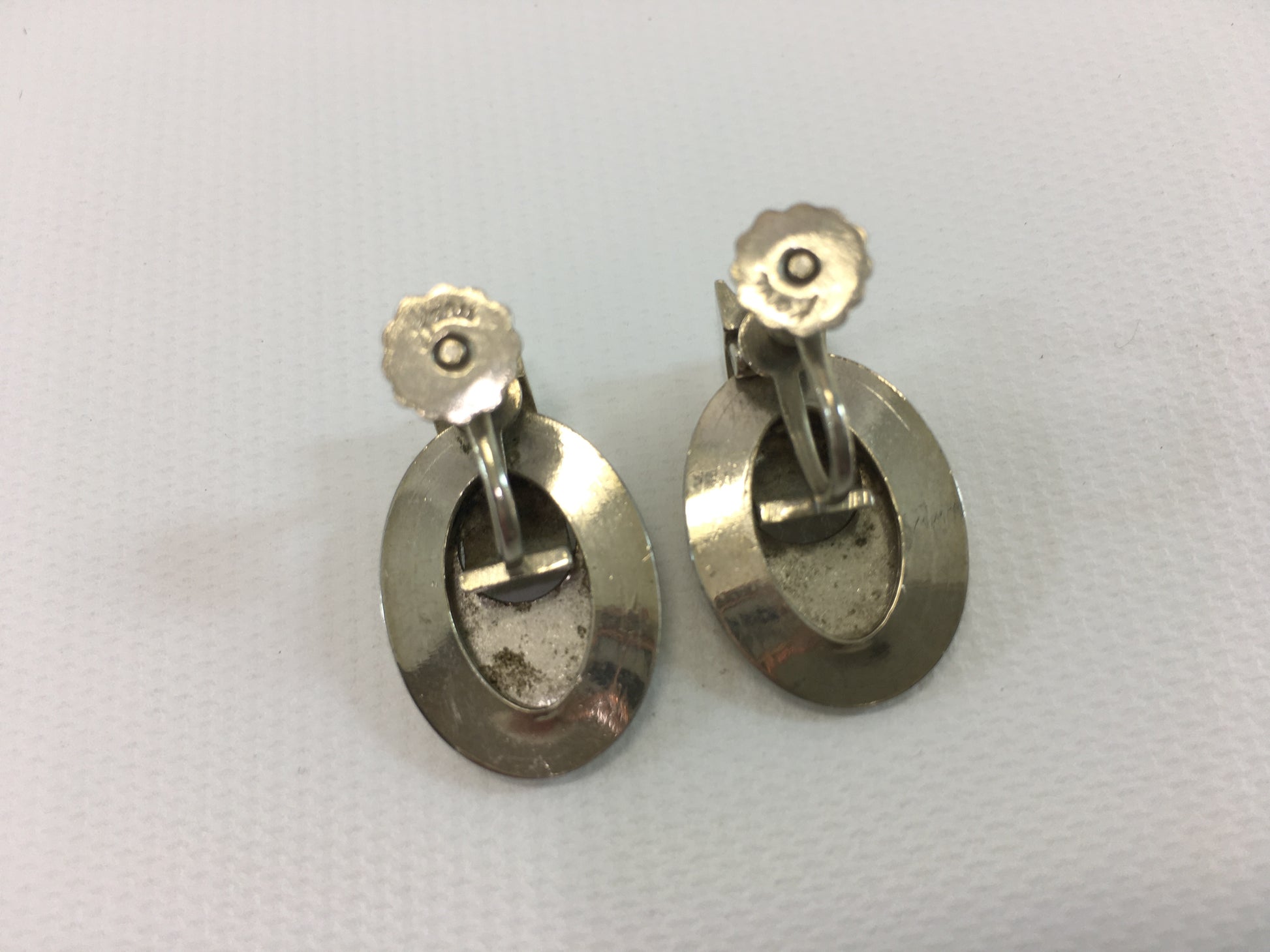 Earrings are in good condition. Backs of front disks have a little corrosion (?).