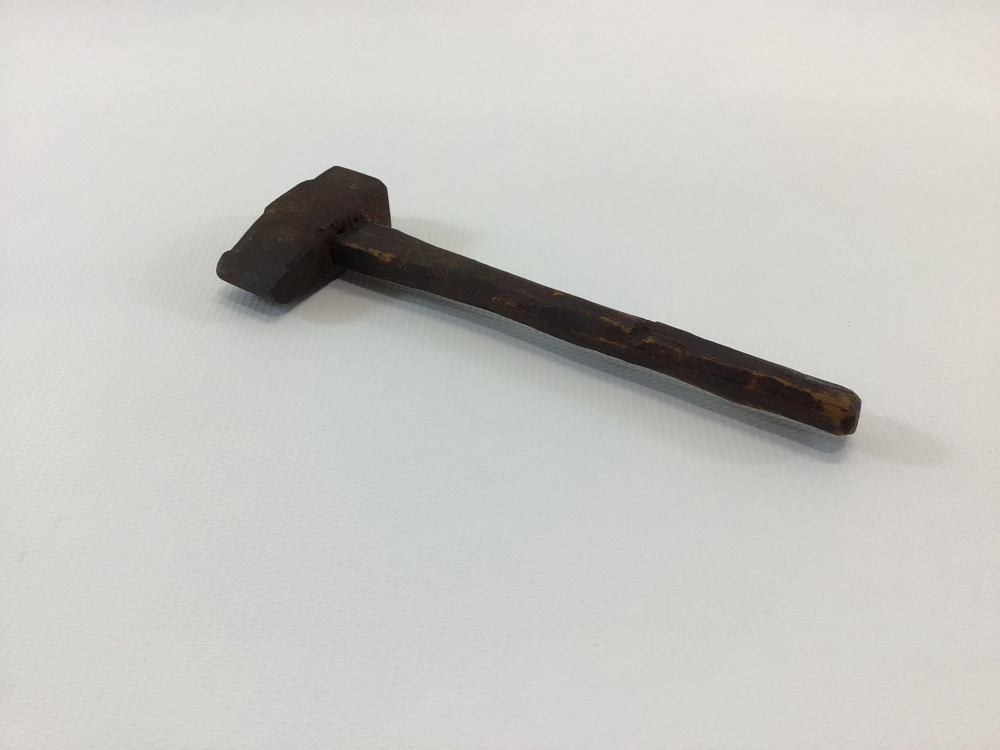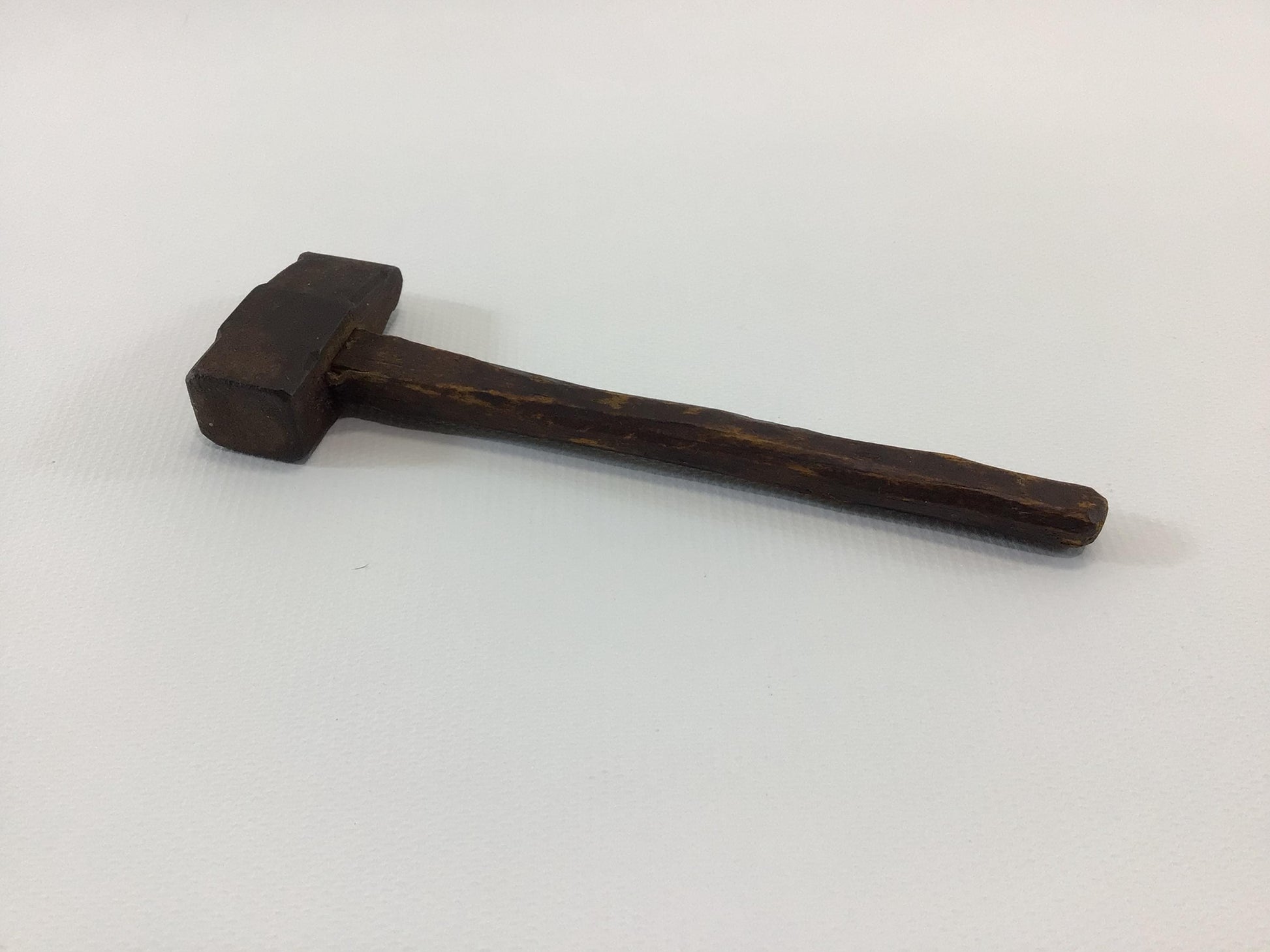 Maul is in fair, sturdy condition. Has play wear scuffs, scratches and dings, oxidation rusting and age discoloration patina. Overall measures 4 3/4" long.