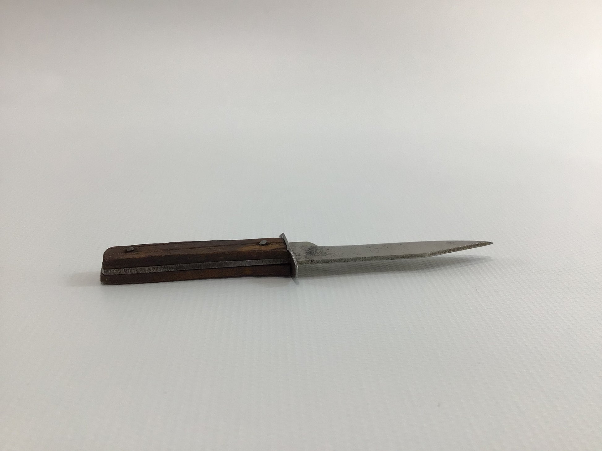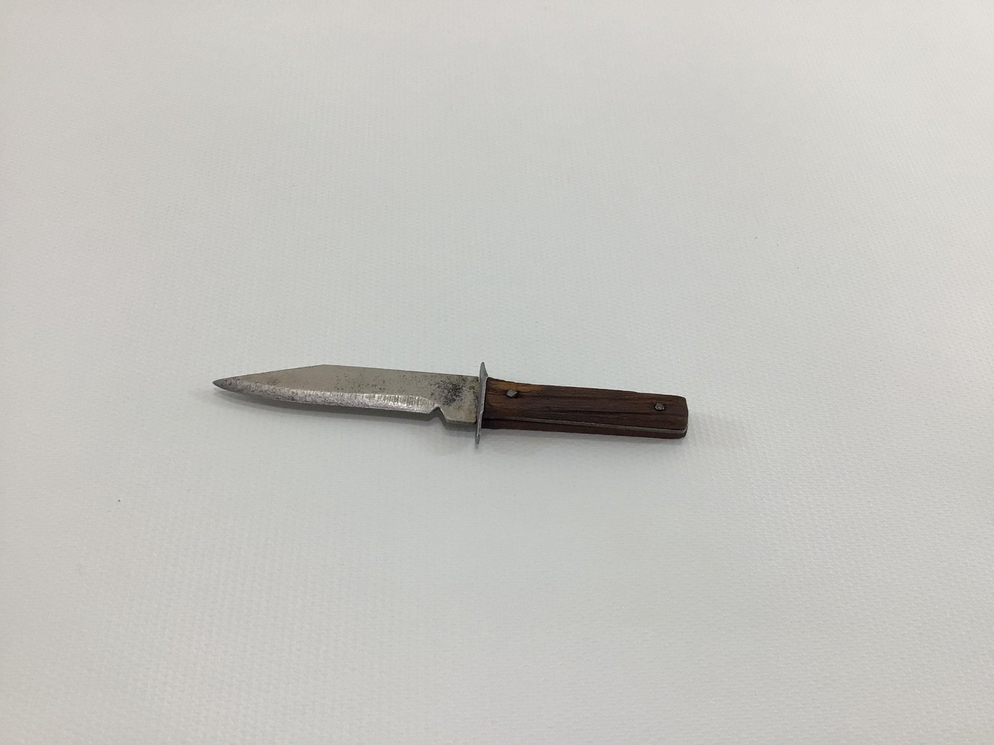 An old souvenir novelty knife in fair condition, blade and hilt have some oxidation staining, handles and hilt are slightly loose. It measures approx. 3 3/4" long.