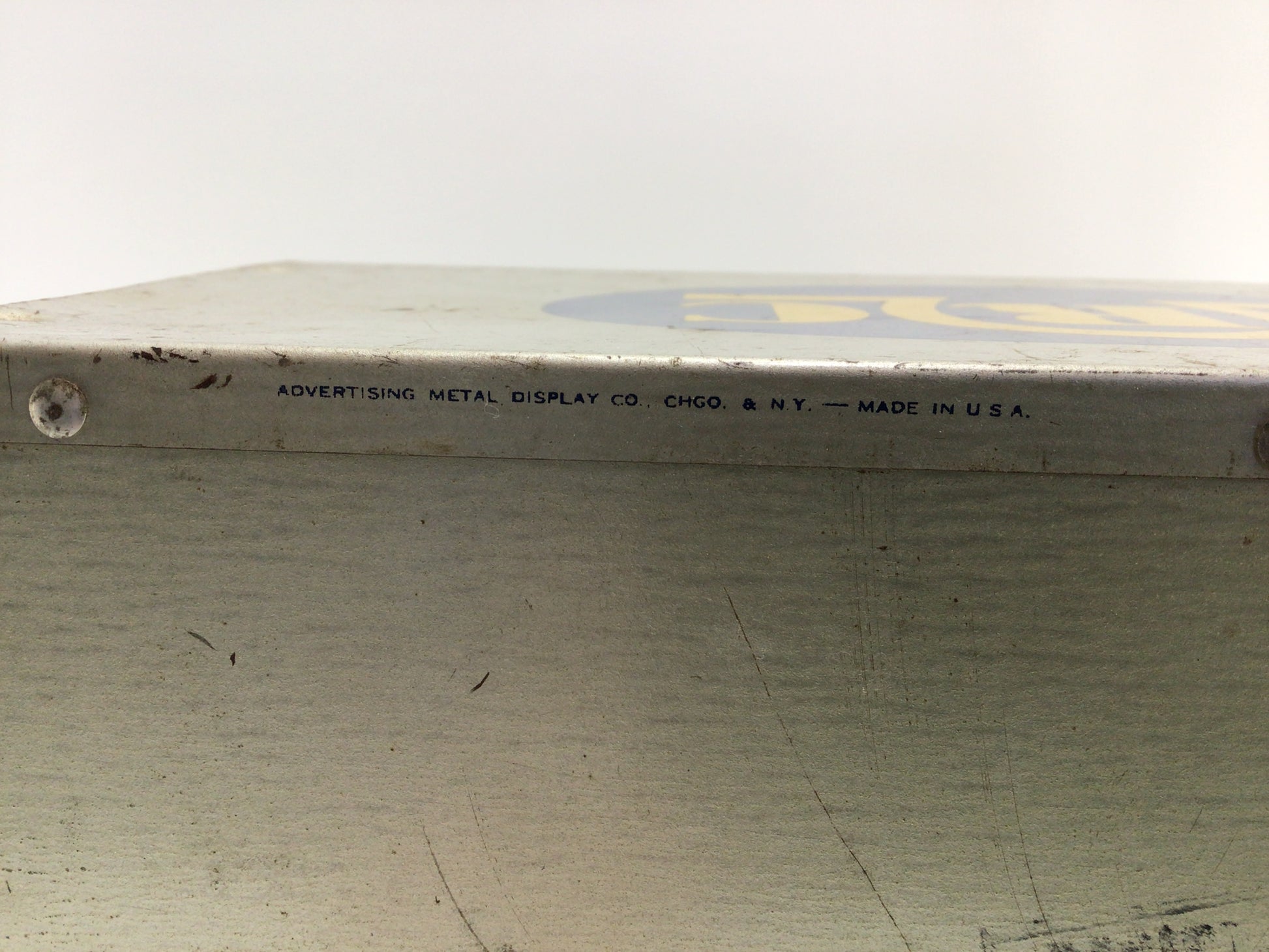 Box is in solid, sturdy condition. It does have some use wear scuffs, scratches and worn paint spots. Measures approx. 10 3/4" across x 6" high x 5 1/2" deep.