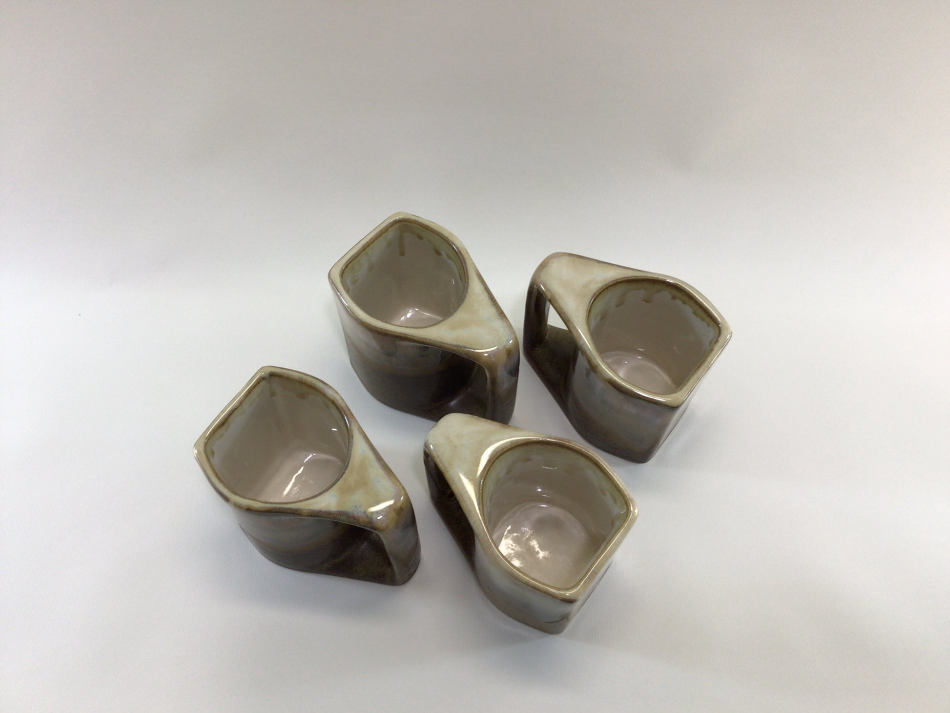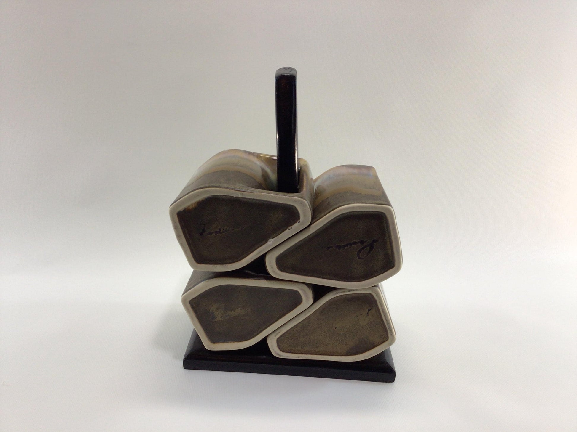 Retro 70s Padilla Stackable Drip Glaze Stoneware Coffee Mug Set of 4.