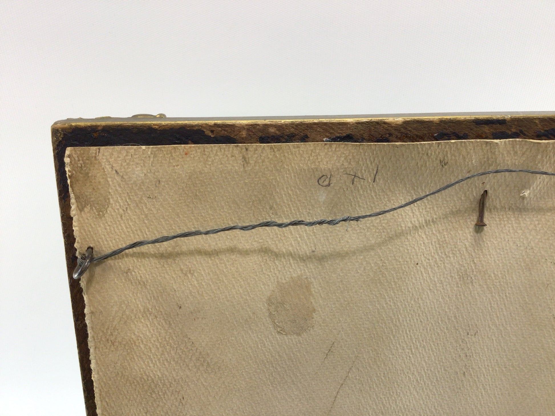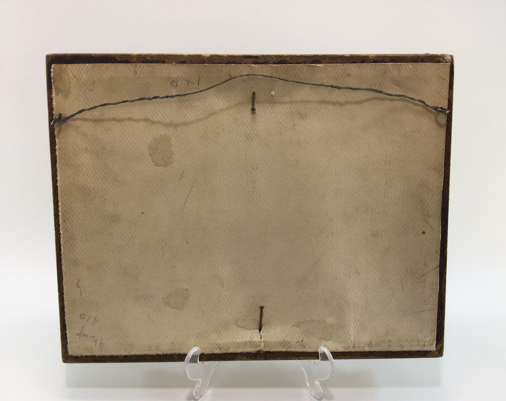 Art is in good condition. Frame has wear with a large chipped piece missing from its top right corner and other chipping along the edges. Overall the piece measures approx. 10 3/4" x 13 3/4".