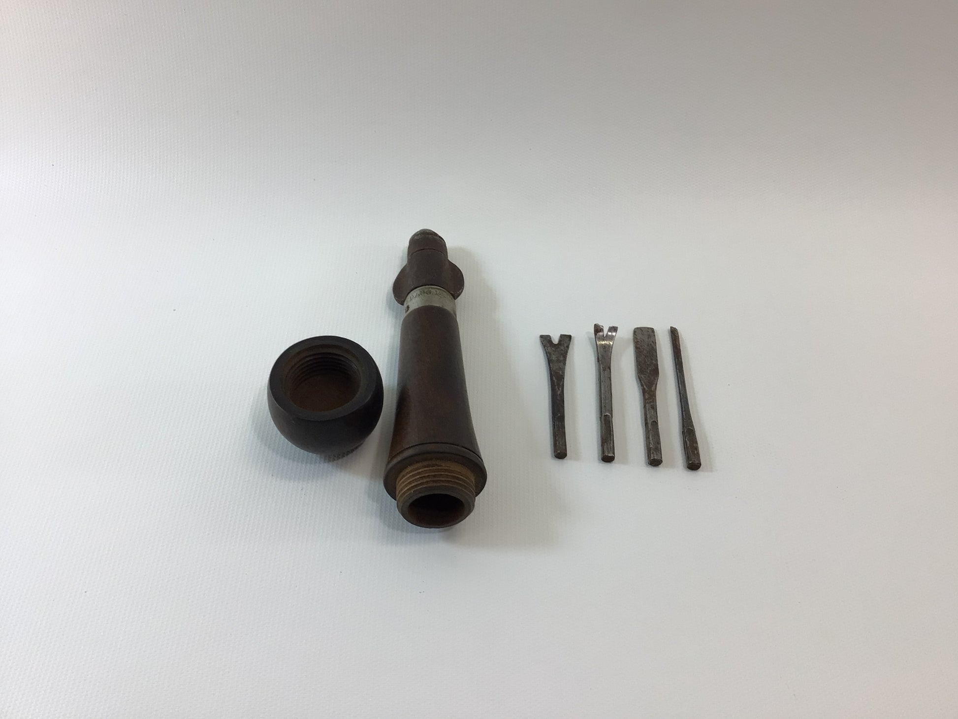 Tool is in fair condition, handle has a split, parts have oxidation rusting and use wear (scratches, scuffs, dings). It has only 4 of its original bits.
