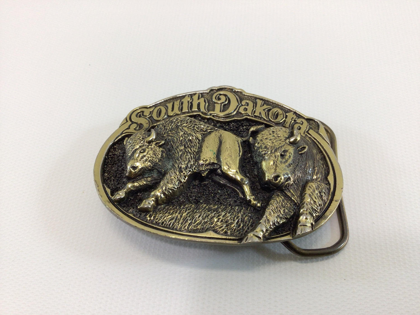 South Dakota Buffalo Brass Belt Buckle 1983 Great American Buckle Company H1259 Made in USA Quality Vintage Fashion Accessory.