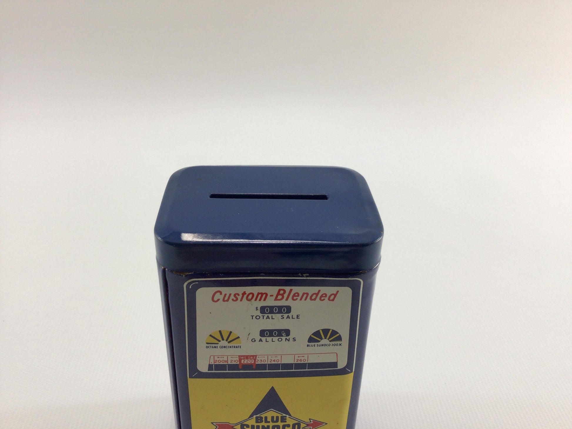 Sunoco Blue Tin Can Coin Bank Vintage 1960s Gas Station Advertising Premium Give Away