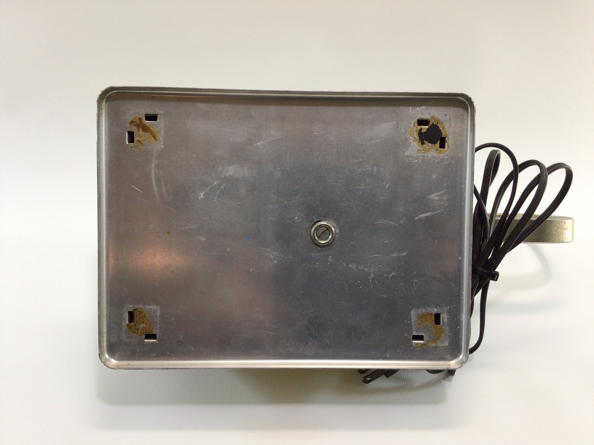 Saw is in fair condition, motor works fine but is missing its blade, has scuffs, scratches and play wear dings, also missing its rubber foot pads. The table base measures approx. 9" x 6 3/4" x 3 3/8" high.