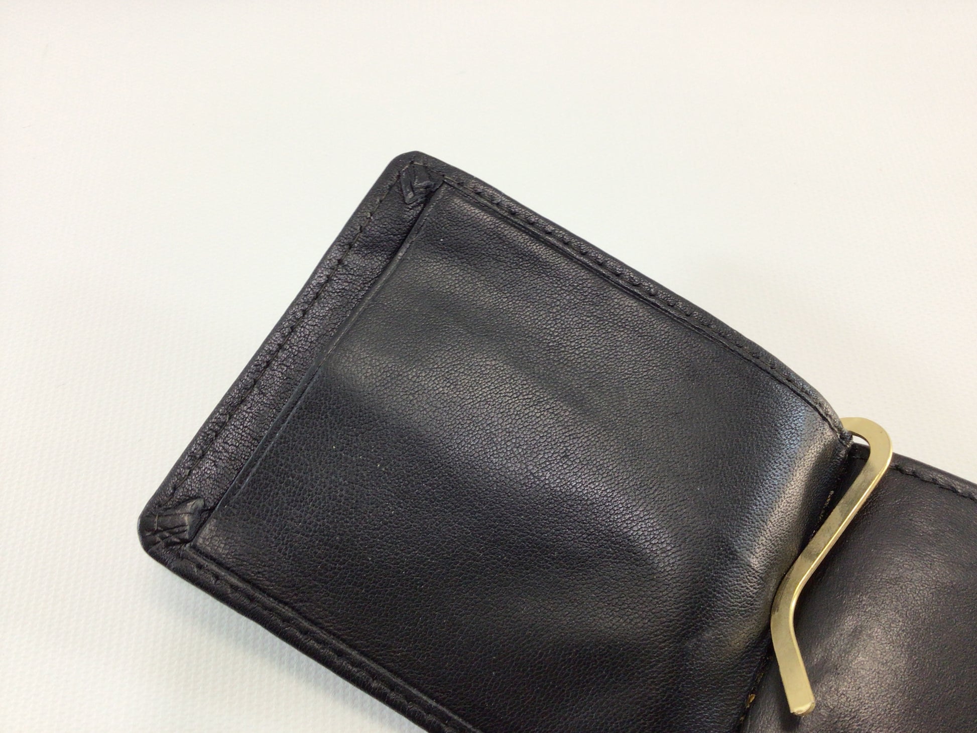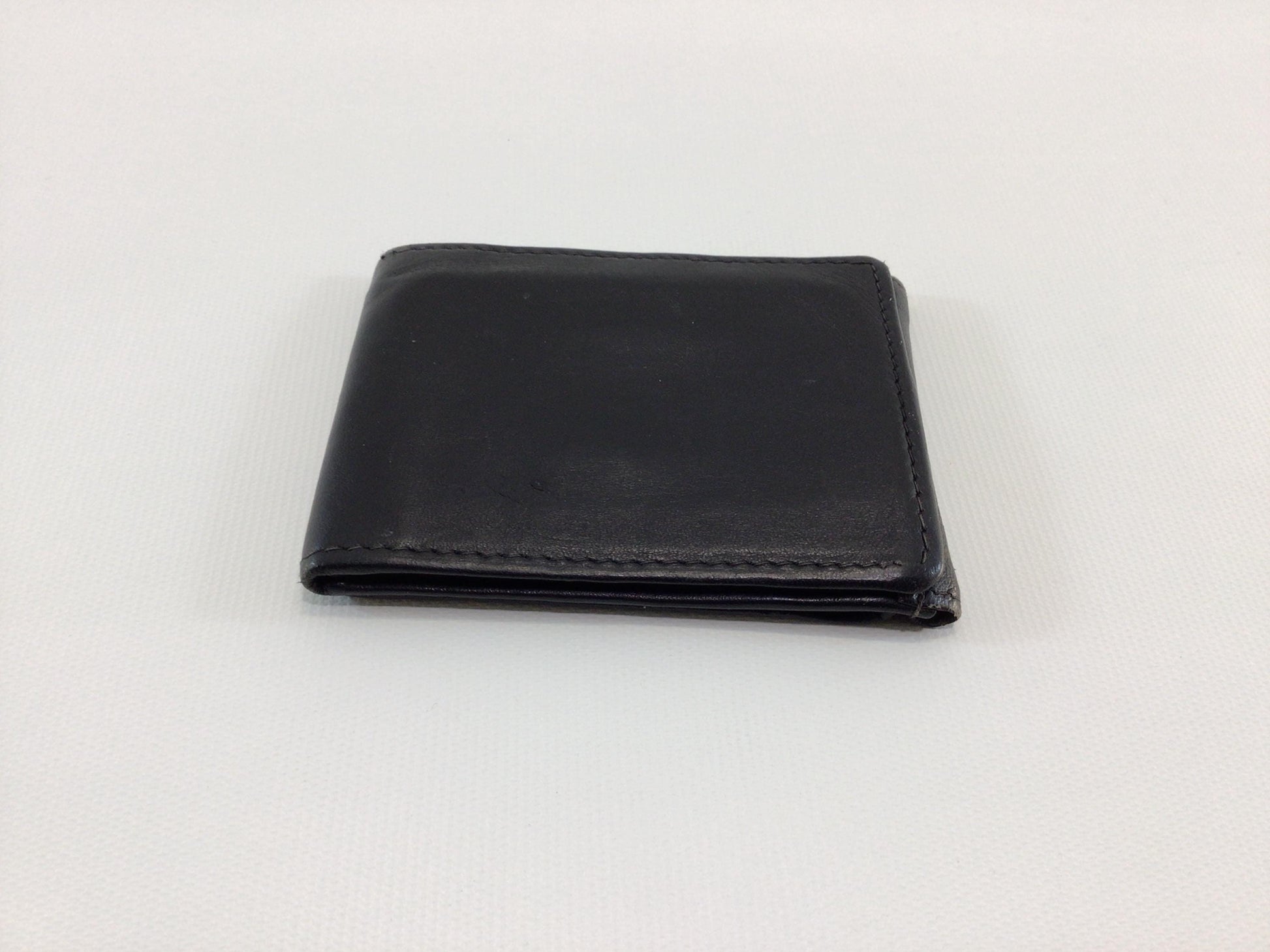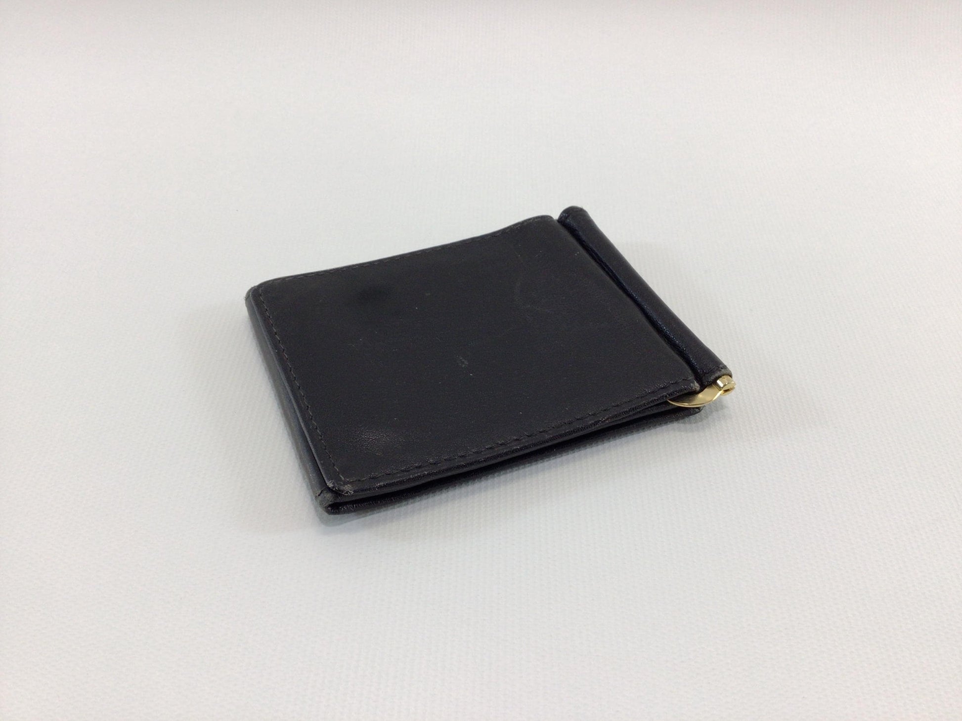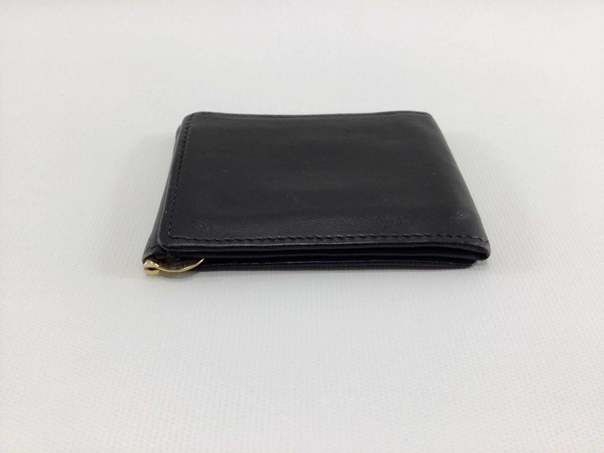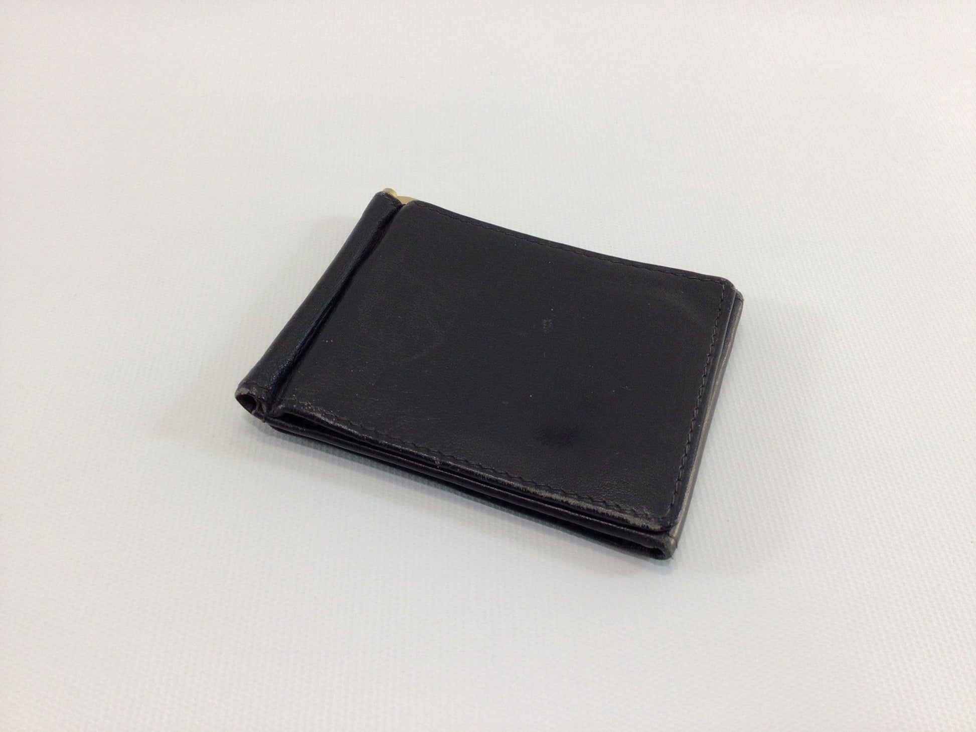 Vintage Black Leather Tri-Fold Money Clip Wallet.