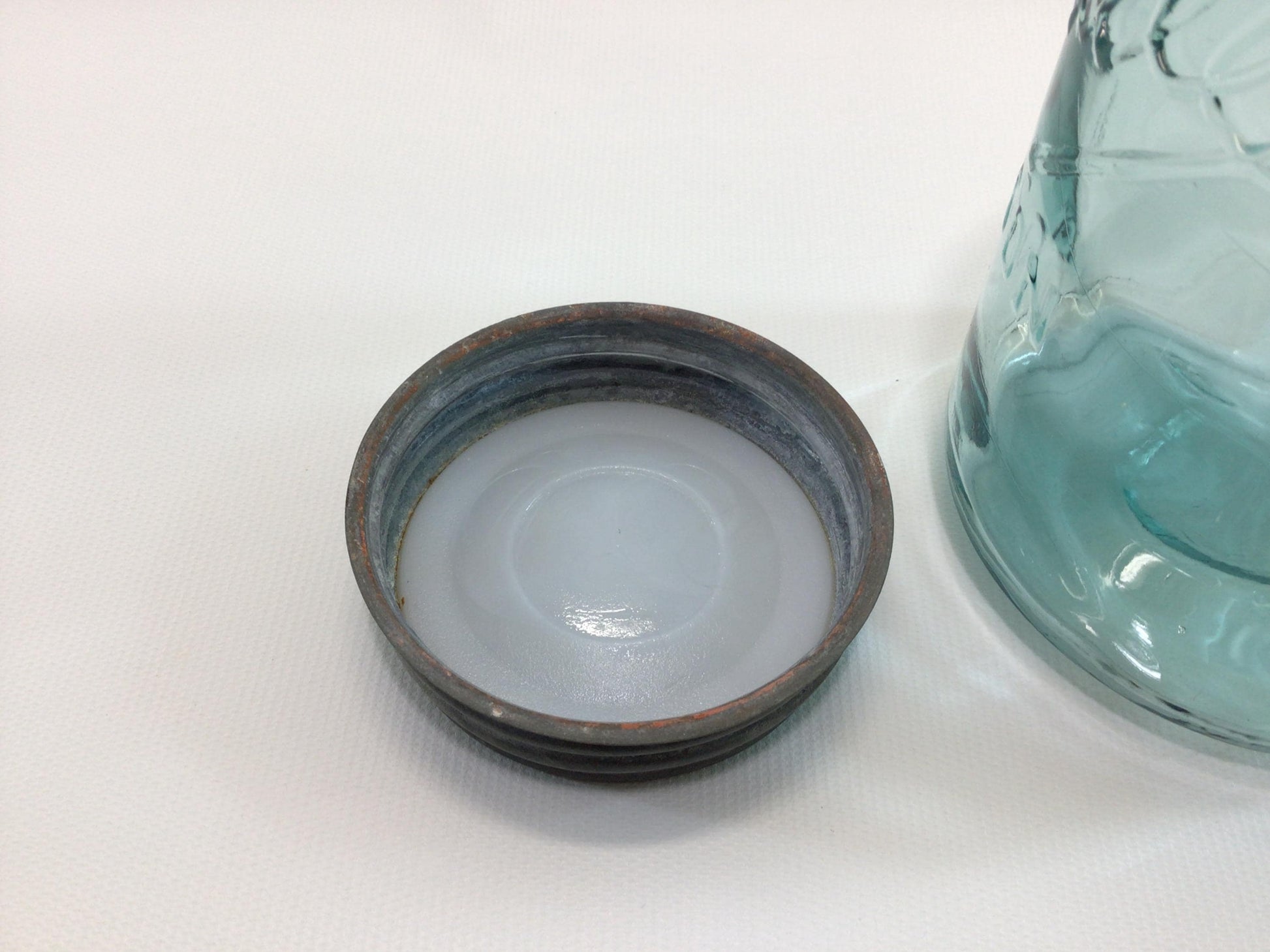 Vintage Blue Glass Ball Mason Jar One Quart J6 with Zinc Lid.