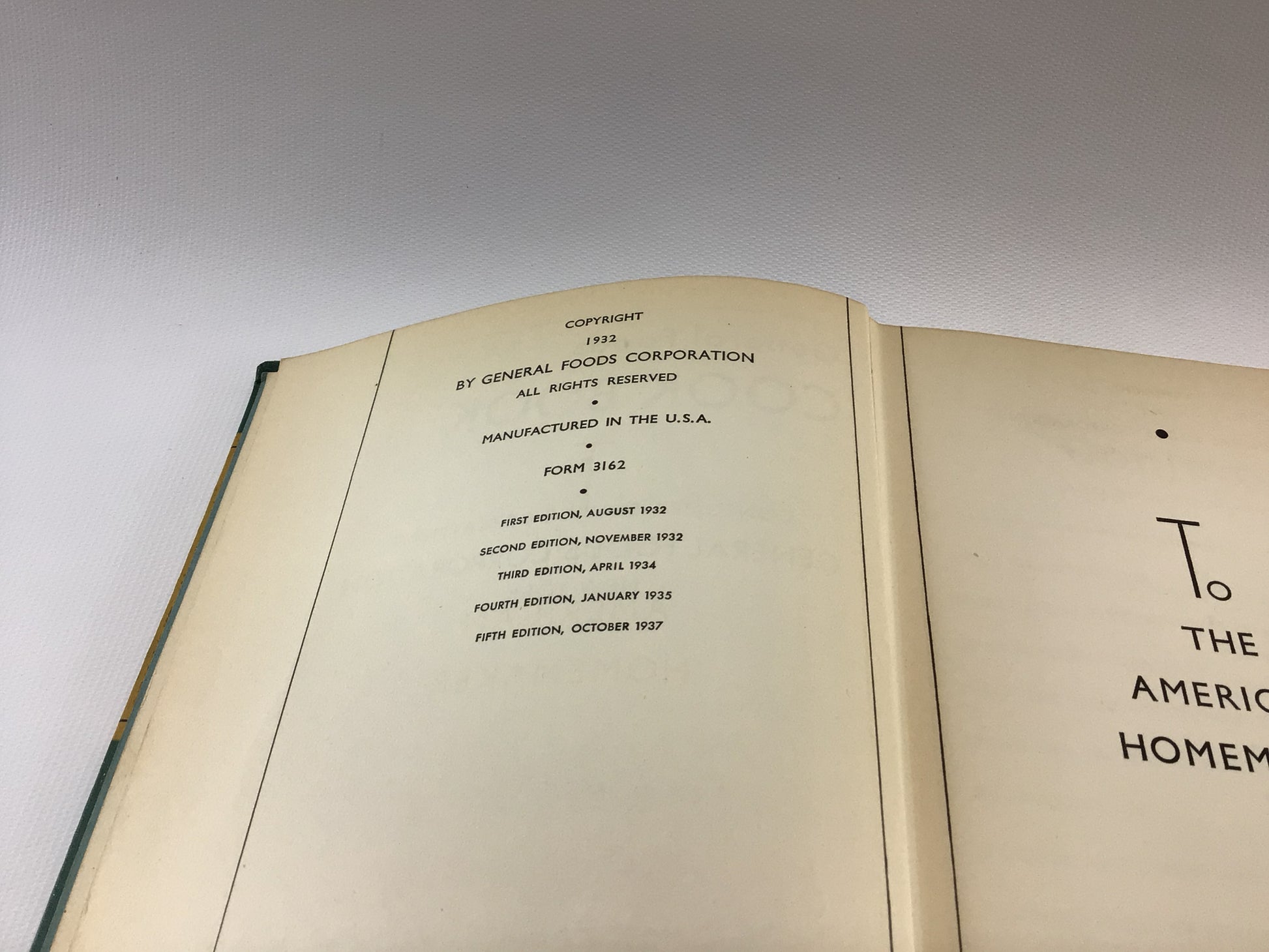 Vintage Cookbook General Foods Cook Book Copyright 1937 5th Edition.