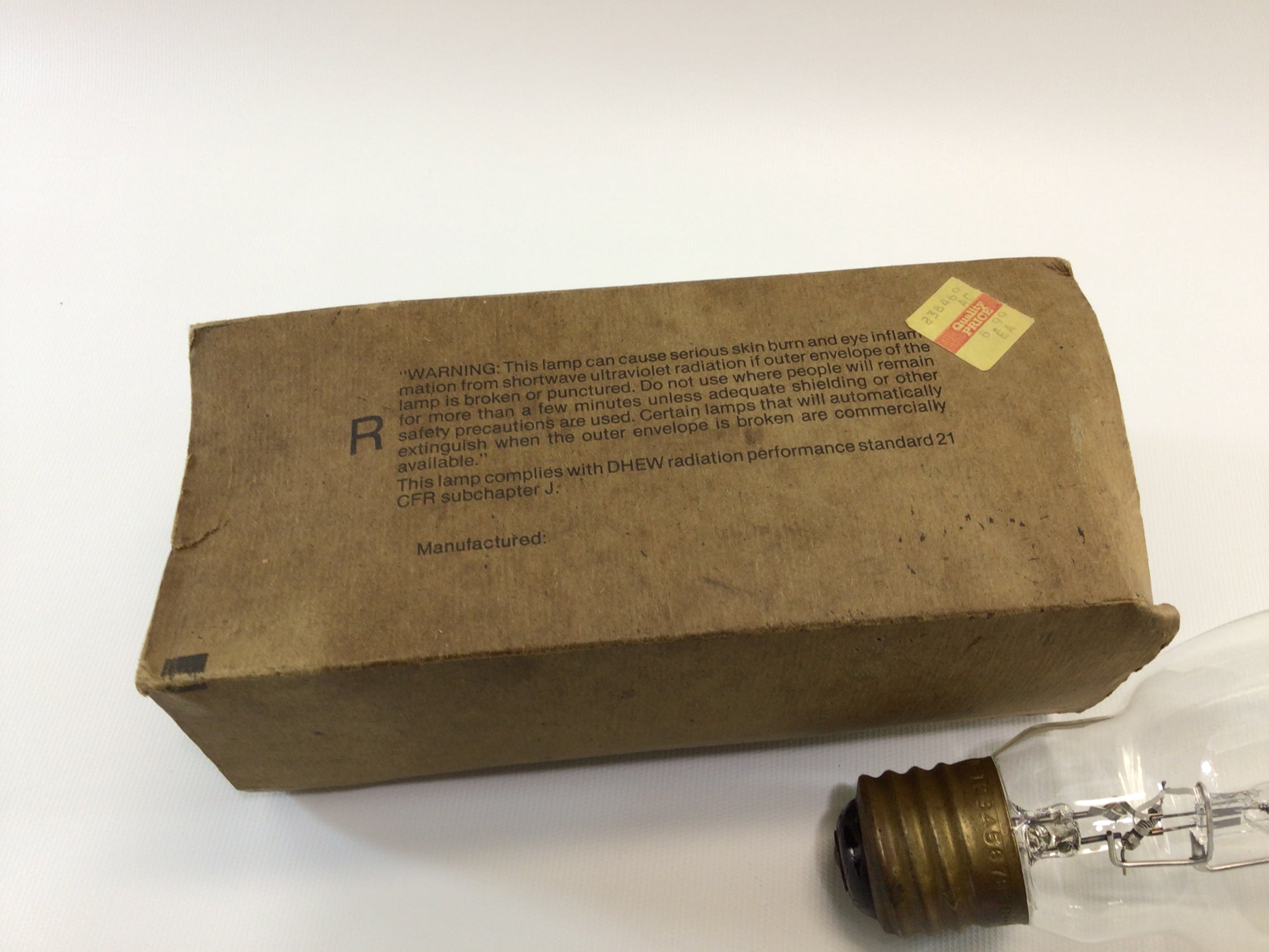 Lamp bulb is in used untested condition. Selling for display purposes only. Box is in poor condition with creases and wear. Bulb measures approx. 8" long x 3" diameter.