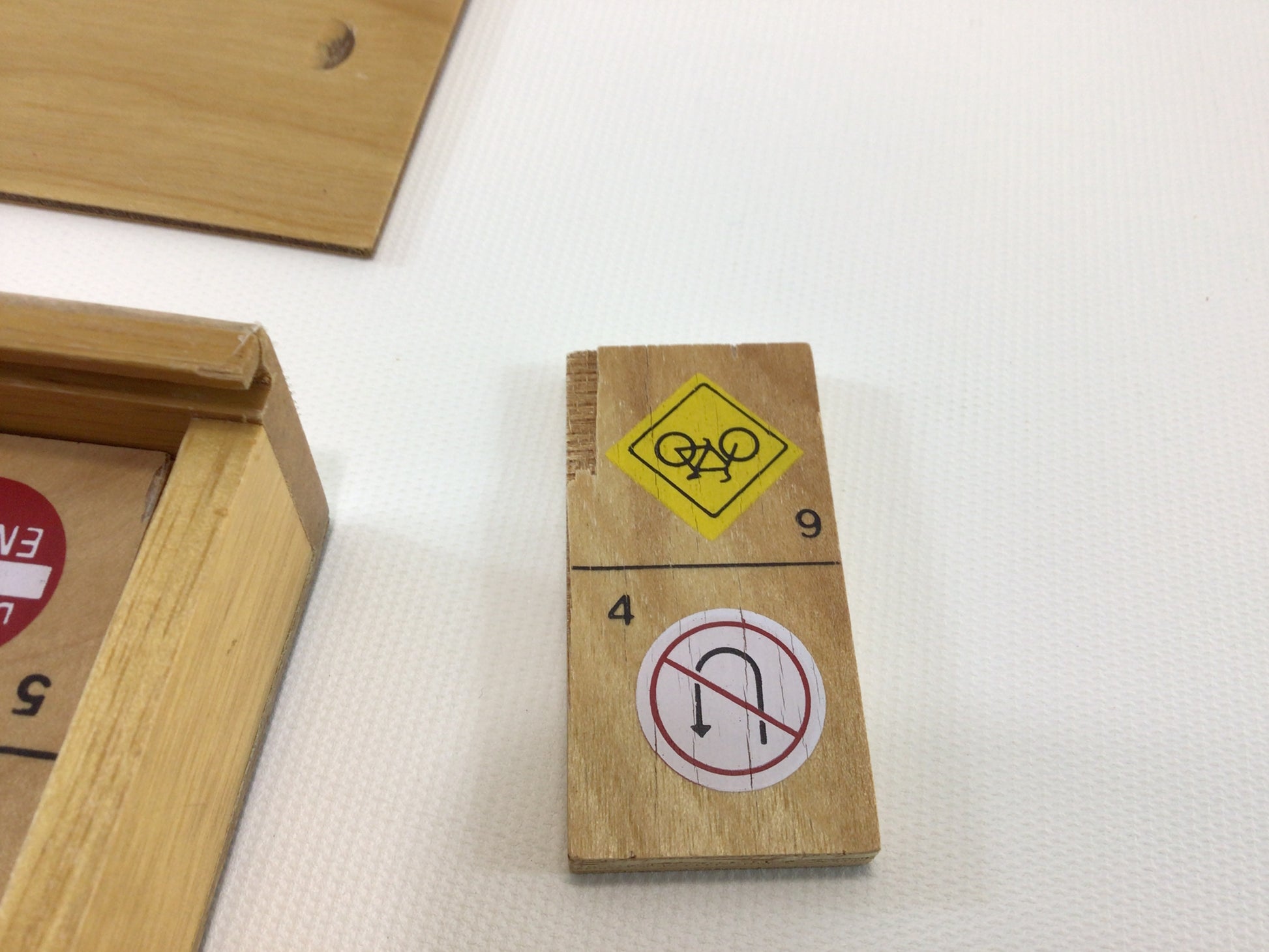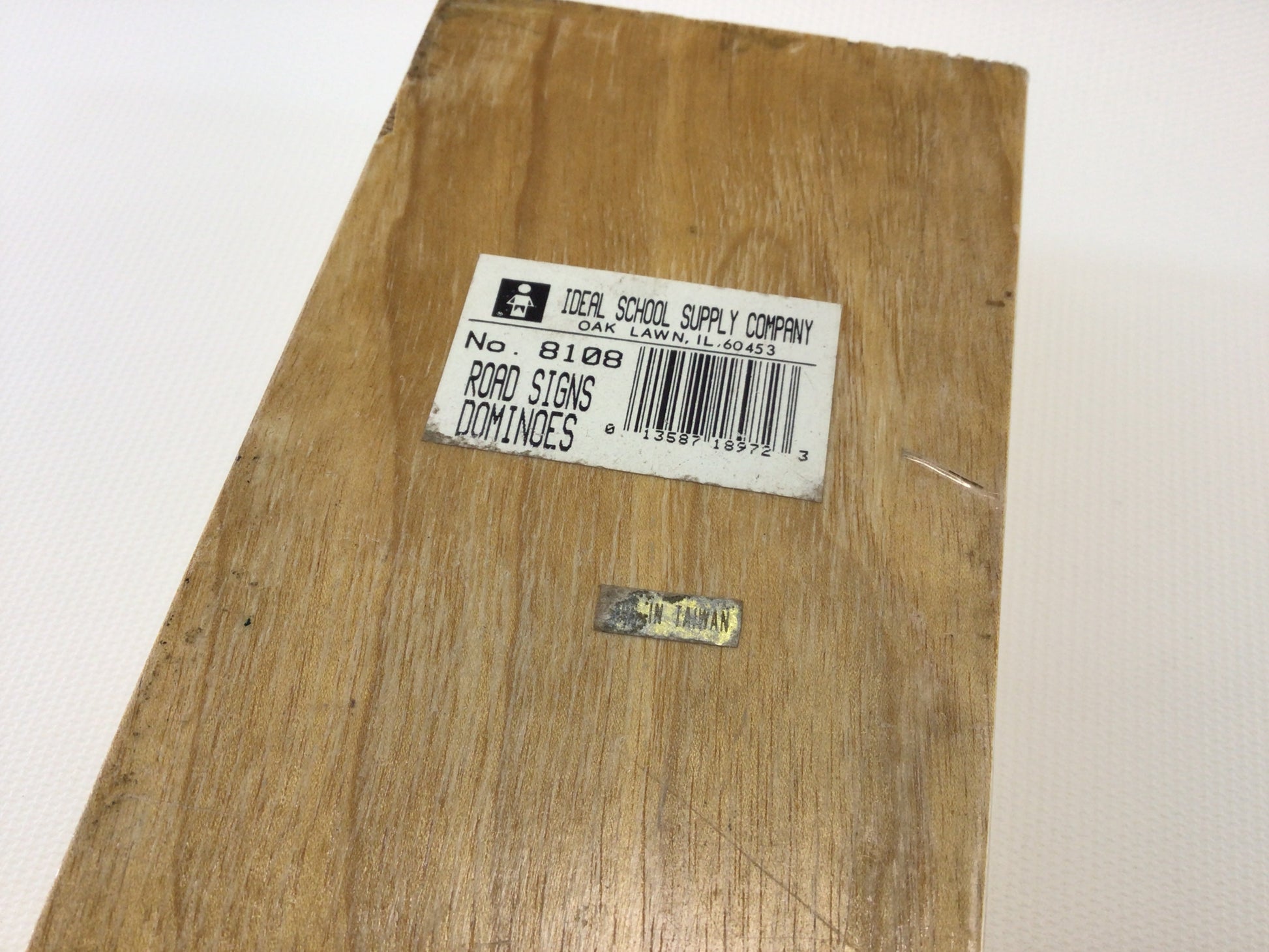 Wooden Traffic Sign 28 Piece Dominoes Set Vintage Educational Family Fun Strategy Game.
